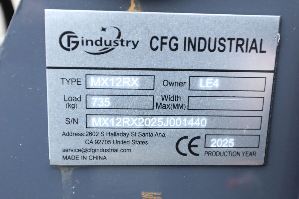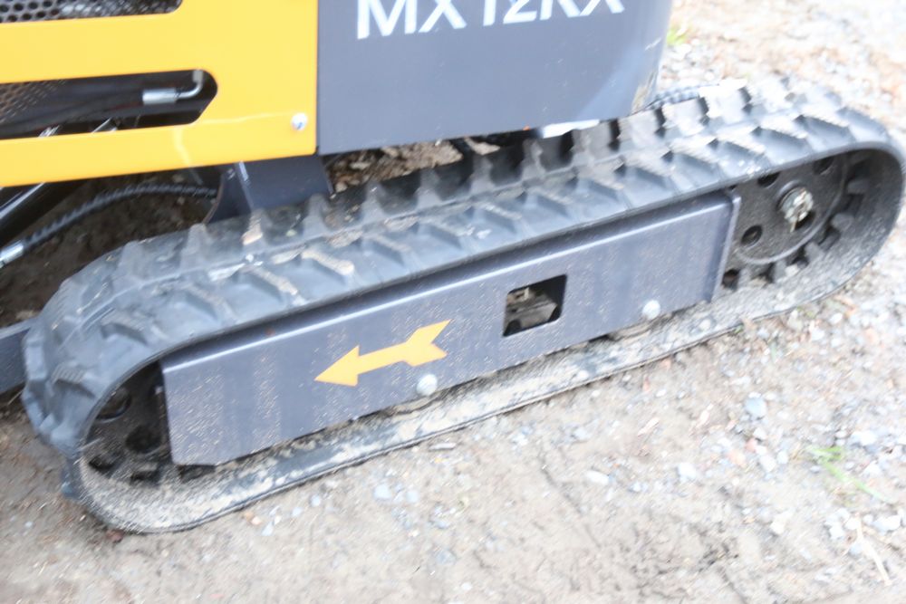 New 2025 CFG Industrial MX12RX Mini Excavator with a 420CC gas engine, dozer blade, bucket, pilot control’s, and digital gauges. Hours reading less than 1 hour.