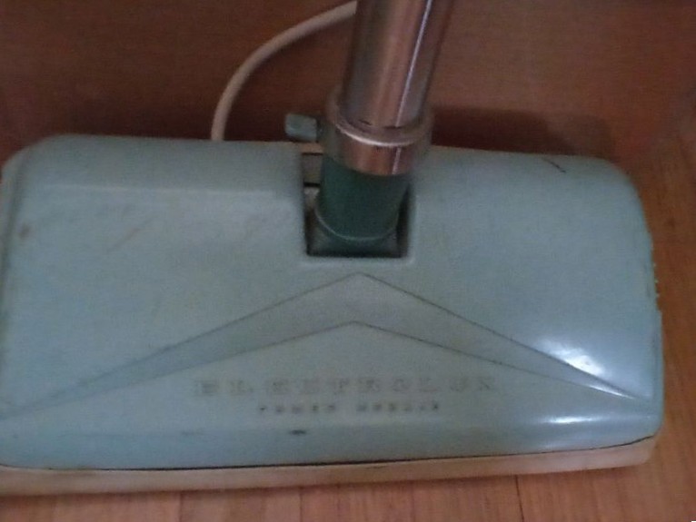 Vintage Electrolux Canister Vacuum. Light blue metal Electrolux canister vac with carpet and other attach.