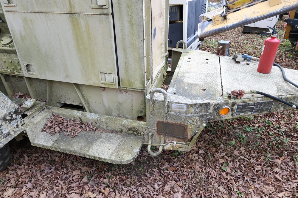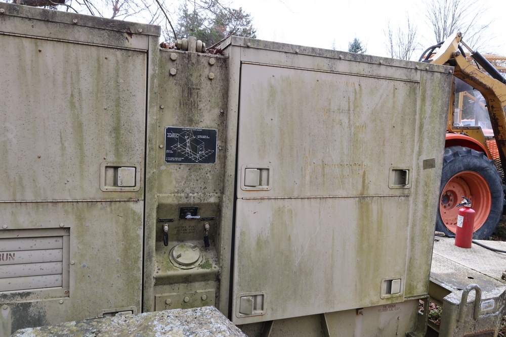 Libby Corporation MEP-007B diesel generator set, serial RZ01413, trailer-mounted, rated 100 kW with selectable 50/60 Hz output, and multi-voltage three-phase capability including 120/208 V and 240/416 V (as per labels). With a Cat 3306 engine.