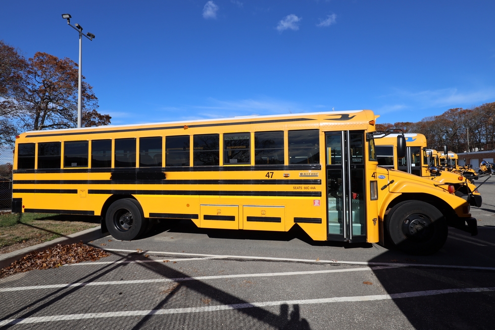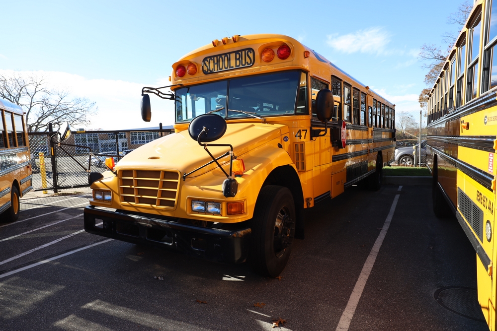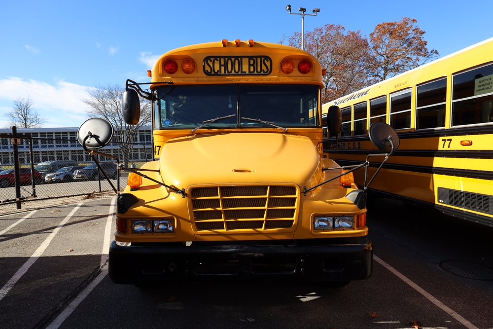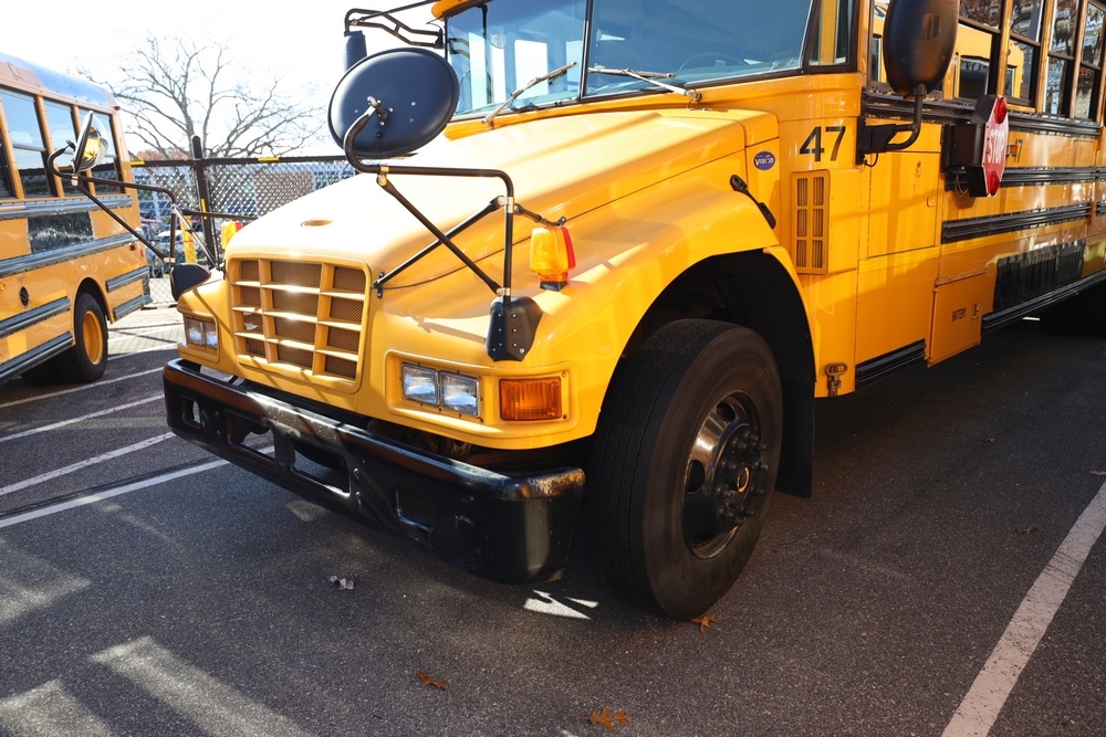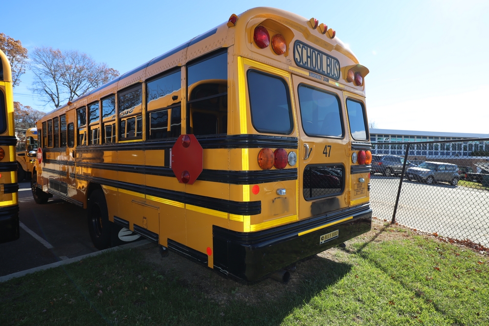 Items include 2007 Blue Bird Vision school bus; Troy-Bilt snow blower; 2011 Chevrolet Express 4500 school bus; Craftsman, Cub Cadet & Toro riding mowers; Traulsen two-door freezer & Motion Fitness/Positive Gaming student dance system dance game boards. Items are located in Ronkonkoma, NY.