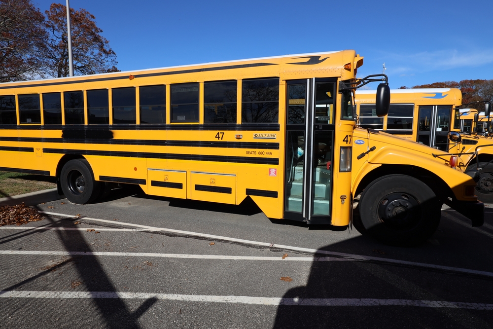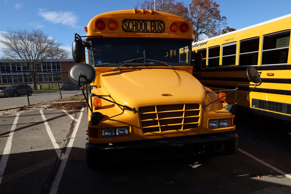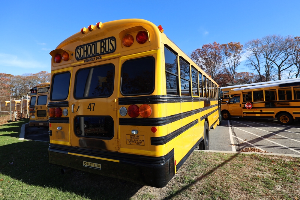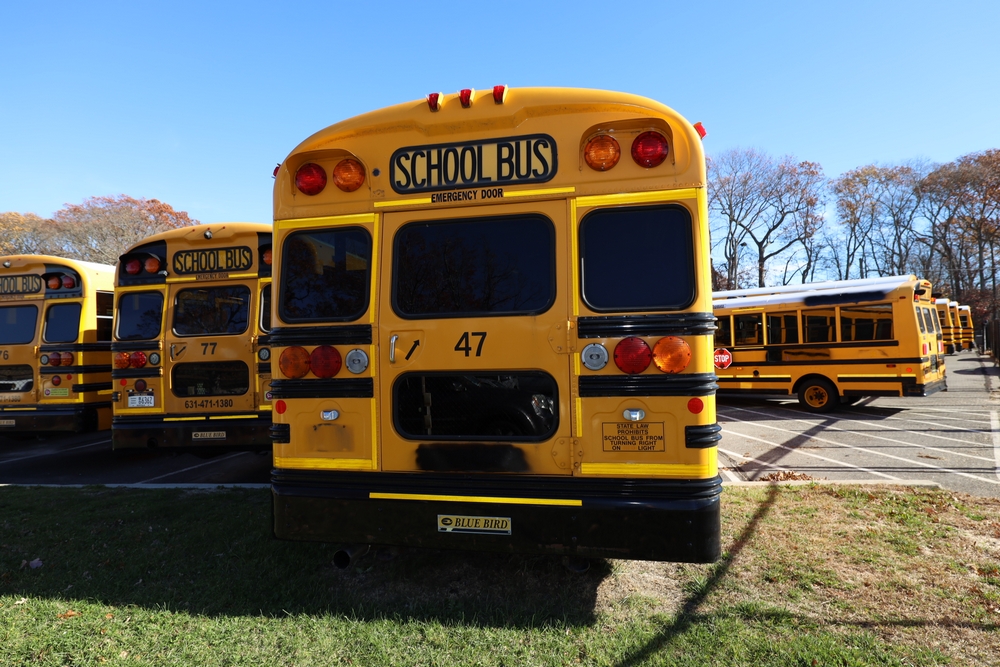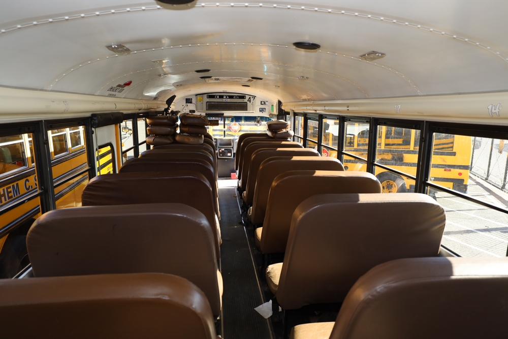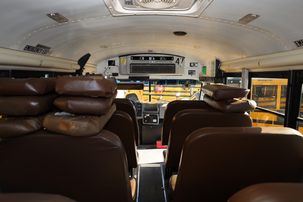 Items include 2007 Blue Bird Vision school bus; Troy-Bilt snow blower; 2011 Chevrolet Express 4500 school bus; Craftsman, Cub Cadet & Toro riding mowers; Traulsen two-door freezer & Motion Fitness/Positive Gaming student dance system dance game boards. Items are located in Ronkonkoma, NY.