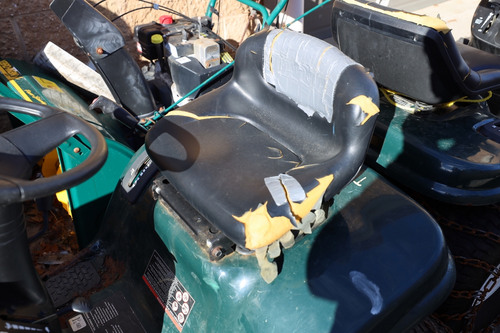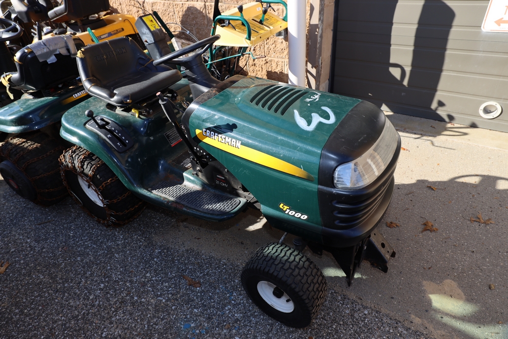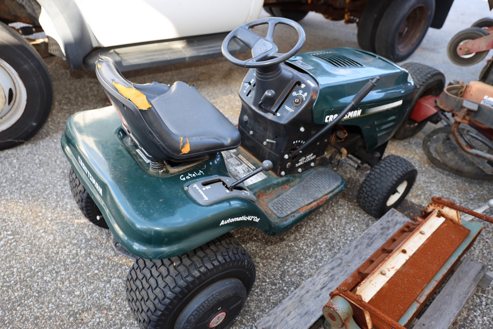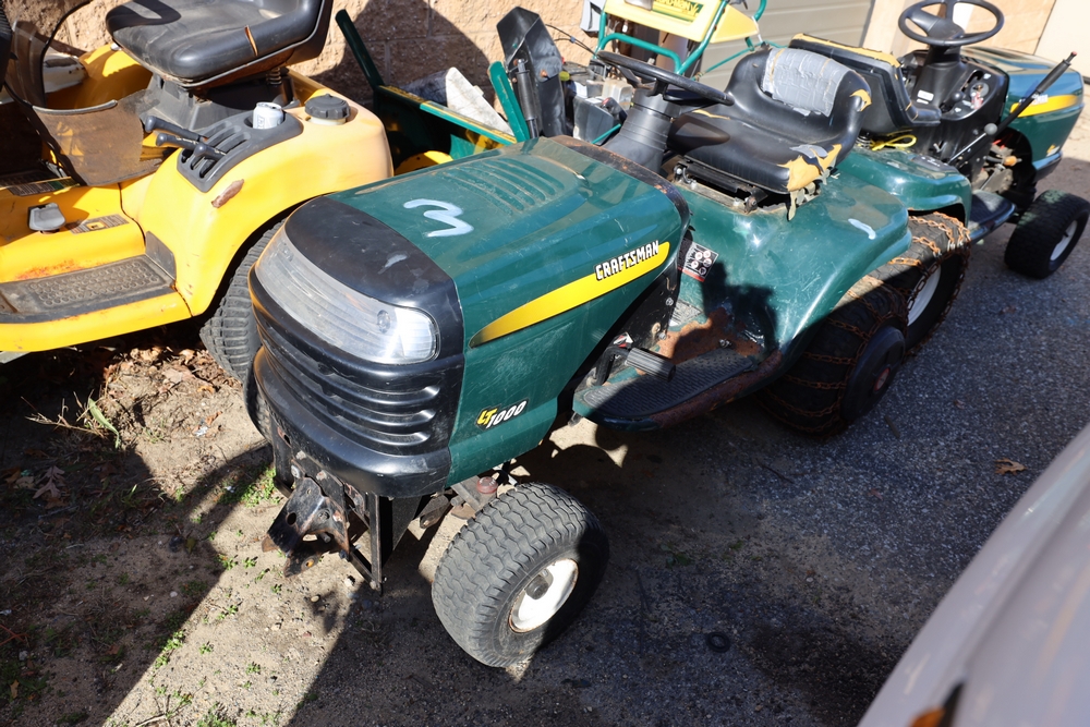 Items include 2007 Blue Bird Vision school bus; Troy-Bilt snow blower; 2011 Chevrolet Express 4500 school bus; Craftsman, Cub Cadet & Toro riding mowers; Traulsen two-door freezer & Motion Fitness/Positive Gaming student dance system dance game boards. Items are located in Ronkonkoma, NY.