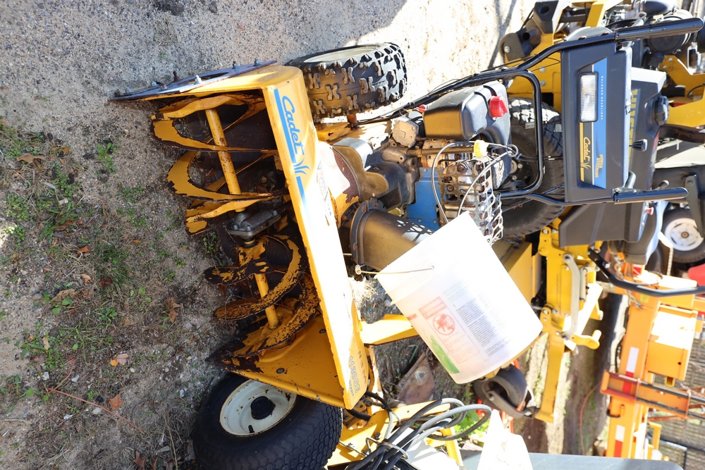 Items include 2007 Blue Bird Vision school bus; Troy-Bilt snow blower; 2011 Chevrolet Express 4500 school bus; Craftsman, Cub Cadet & Toro riding mowers; Traulsen two-door freezer & Motion Fitness/Positive Gaming student dance system dance game boards. Items are located in Ronkonkoma, NY.