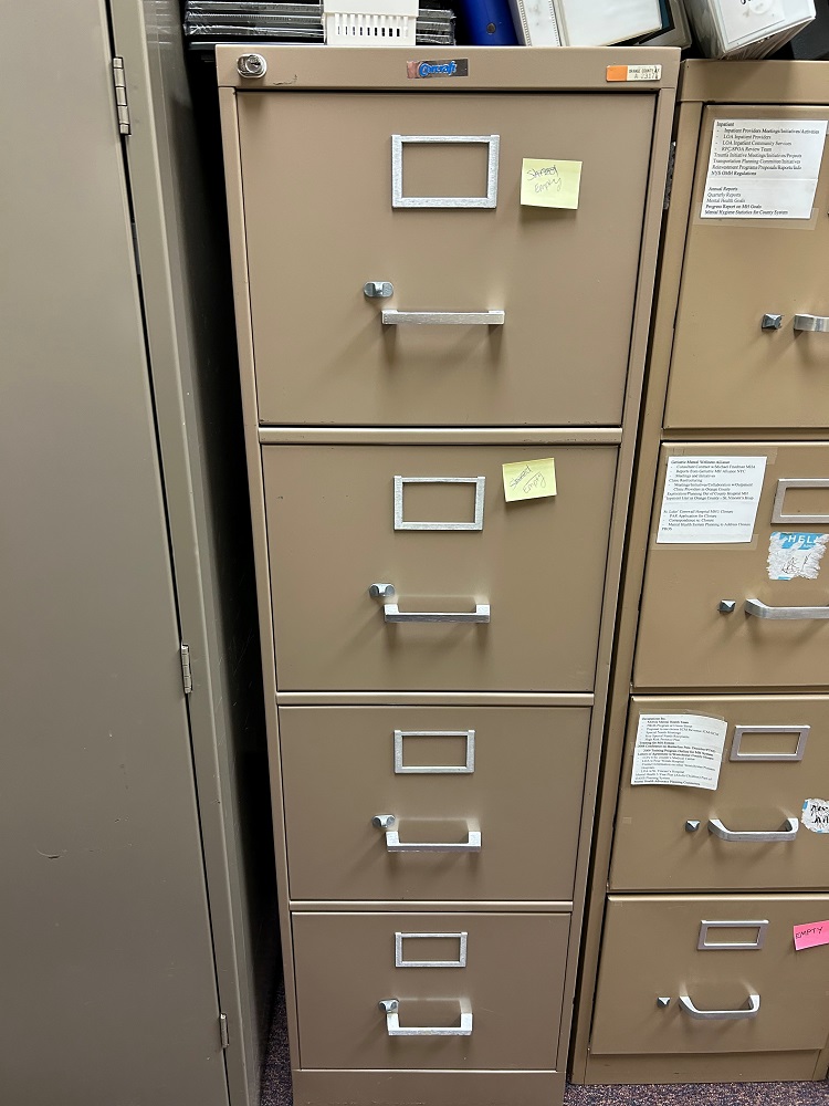Items include filing cabinets. Items are located in Goshen, NY.
