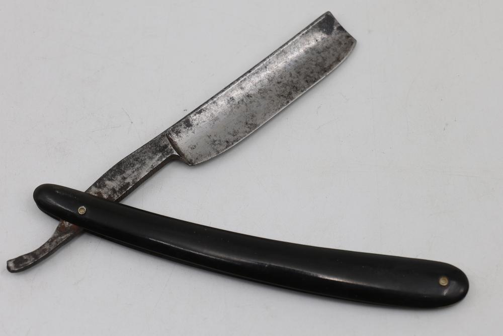 Items are from one straight razor collection & include cased matched pair of Joseph Rodgers & Sons straight razors having etched blade panels in velvet-lined Rodgers fitted case; etched motif Theodore Roosevelt & General Botha straight razor; Texas Luggage U.S. military style portable barber kit; porcelain shaving mugs with four lather brushes, collapsible compact travel shaving mirror with bowl; Warranted Razors having horn handles & notched Sheffield-style blades, etched Washington commemorative hollow blade with patriotic motif; Frederick Reynolds Sheffield straight razors; razors w/ mother of pearl scales/inlaid bar escutcheons/silver tone end caps/wedge-style blades; razors from Rogers & Sons, Wade & Butcher & Mappin's, featuring two horn scales & one celluloid with wedge style blades; razors from Clauss, J.A. Henckels, & H. Boker & Co., featuring mixed celluloid scales with hollow blades/includes multiple cases; barber accessories including razor strops/sharpening stones/boxed Schick blades; hair shapers; identification & value books & more. Items are located in Pleasant Valley, NY.