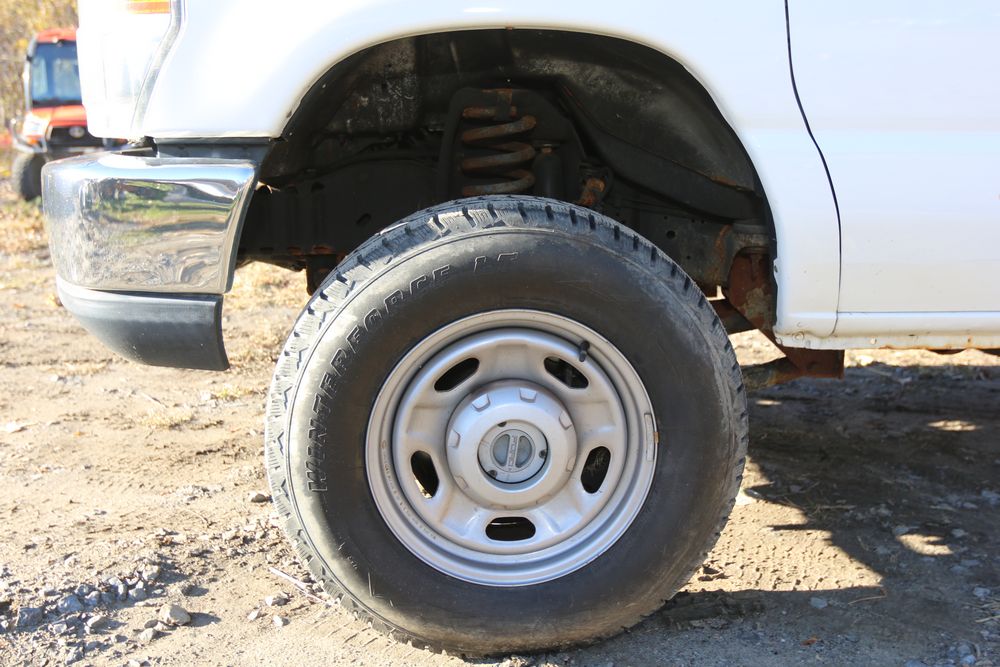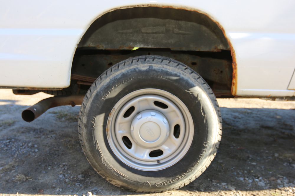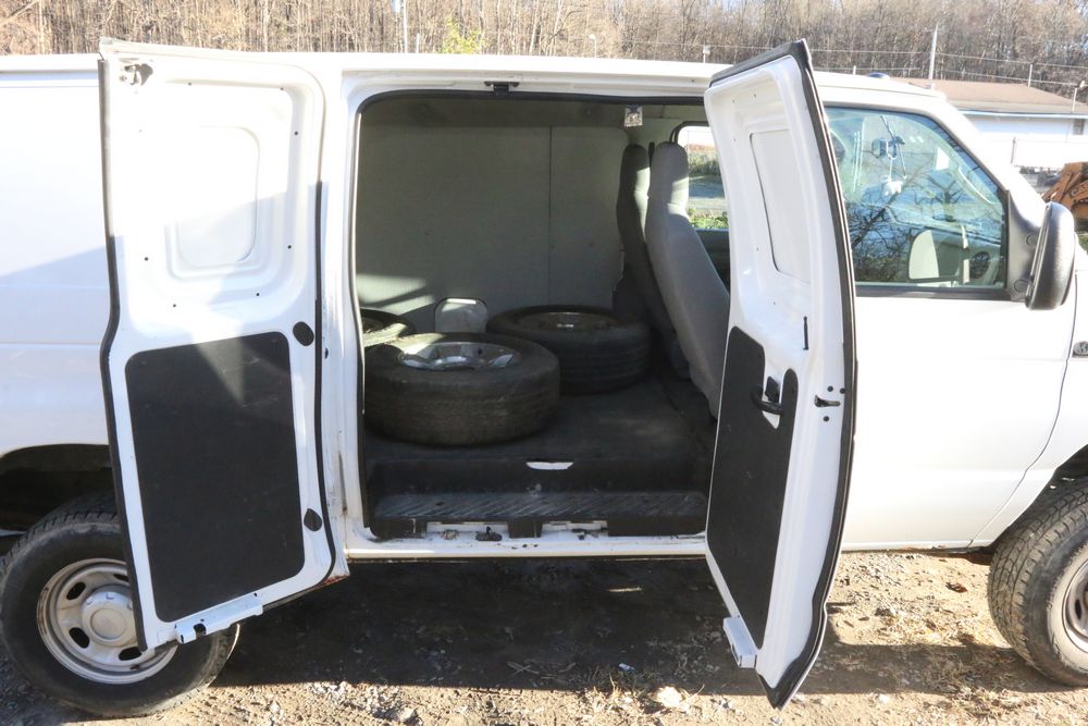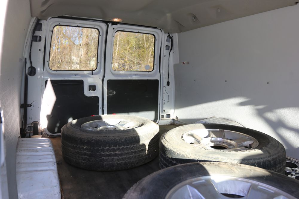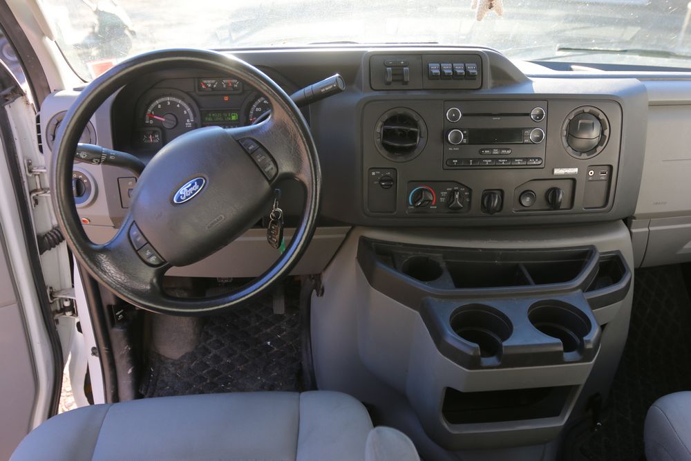 2014 Ford E-250 Van, Quigley 4x4 conversion, 5.4L V8 FFV engine, odometer reading: 136,325, VIN# 1FTNE2EL3EDA84949. Equipped with an automatic transmission, four-wheel drive, power windows, power locks, air conditioning, cloth seating, and an AM/FM audio system. Includes four additional LT275/65R18 wheels. Seller states, "The water pump & pullies, spark plugs & struts were replaced at 100k. I just did the front breaks & rotors maybe about 10k ago. Radio light is fading, most likely just needs re soldering. It will pass inspection." Runs and drives. Title and keys available.