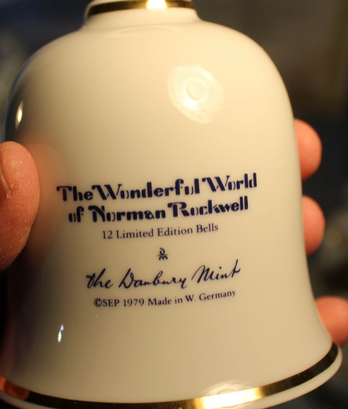 23 Danbury Mint porcelain collector bells including 12 Songbirds of America issued in 1977 (with C.O.A.) and 11 Wonderful World of Norman Rockwell C. 1979.