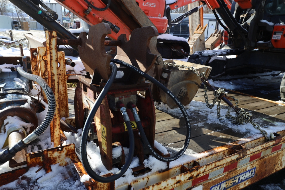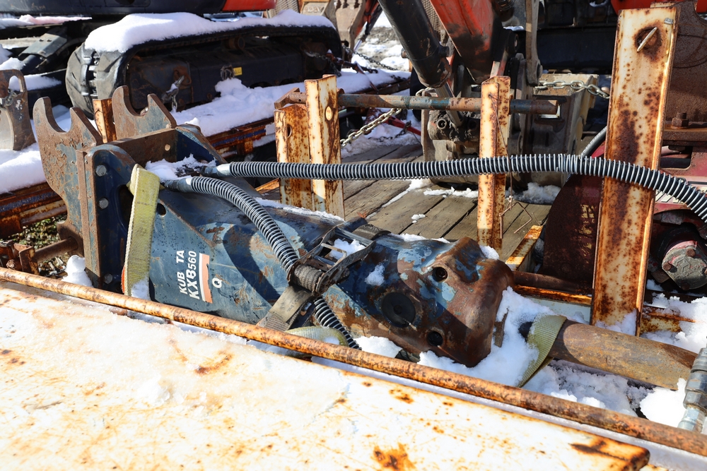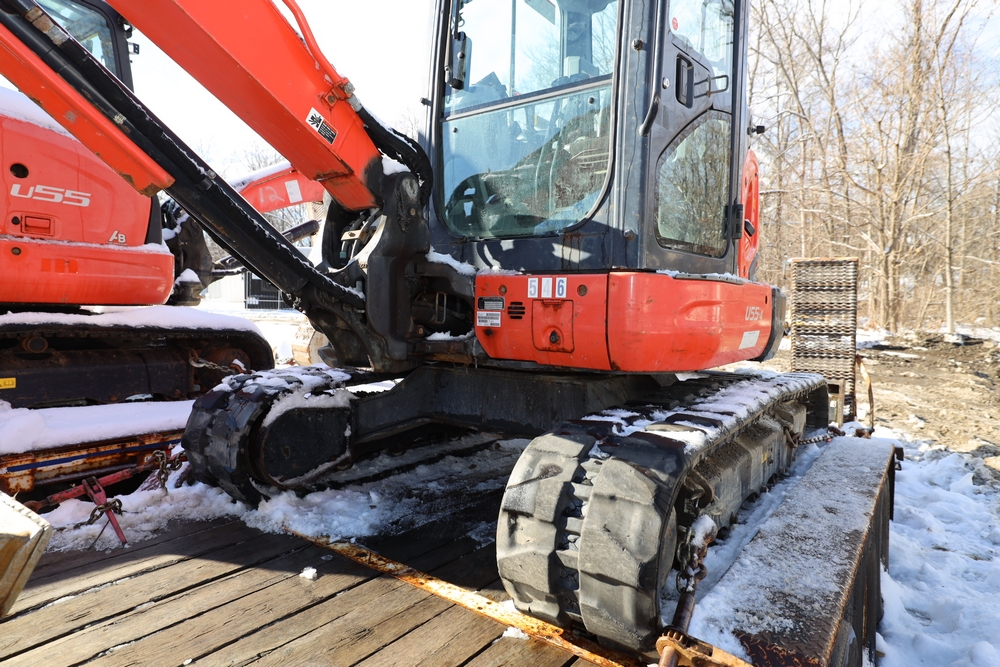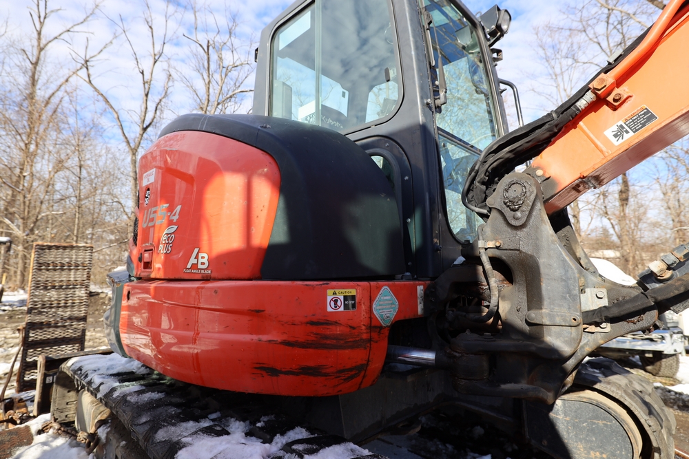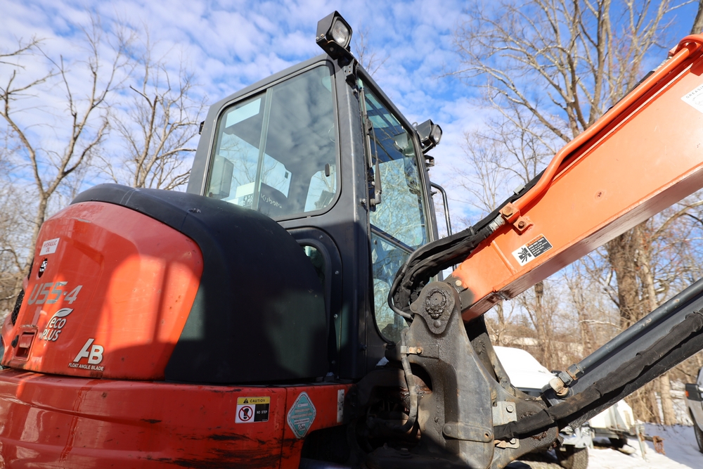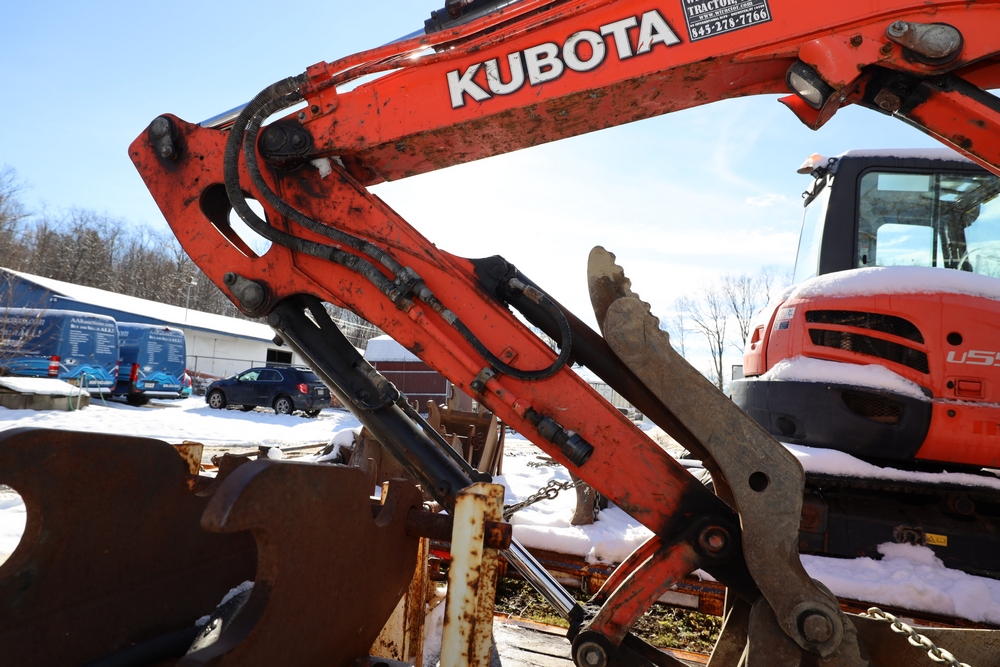 2016 Kubota U-55 Excavator. PIN: JKUU0554K01H25941. SN: 25941. Runs, operates. Enclosed cab. Includes hammer attachment, hydraulic thumb. Seller reports: Age Condition, mileage. Key available.