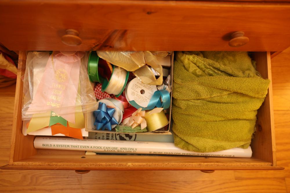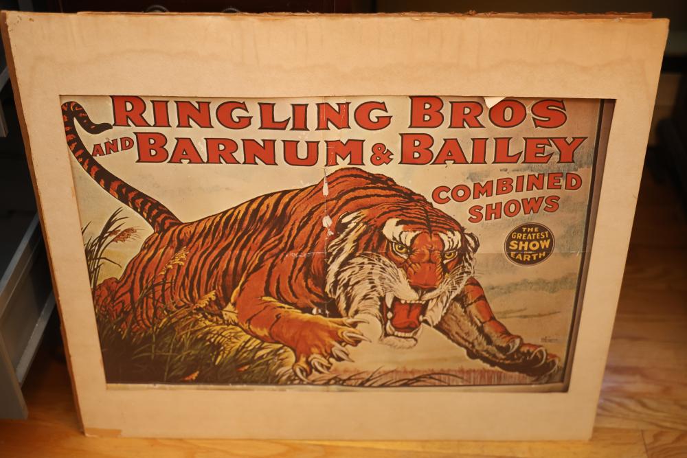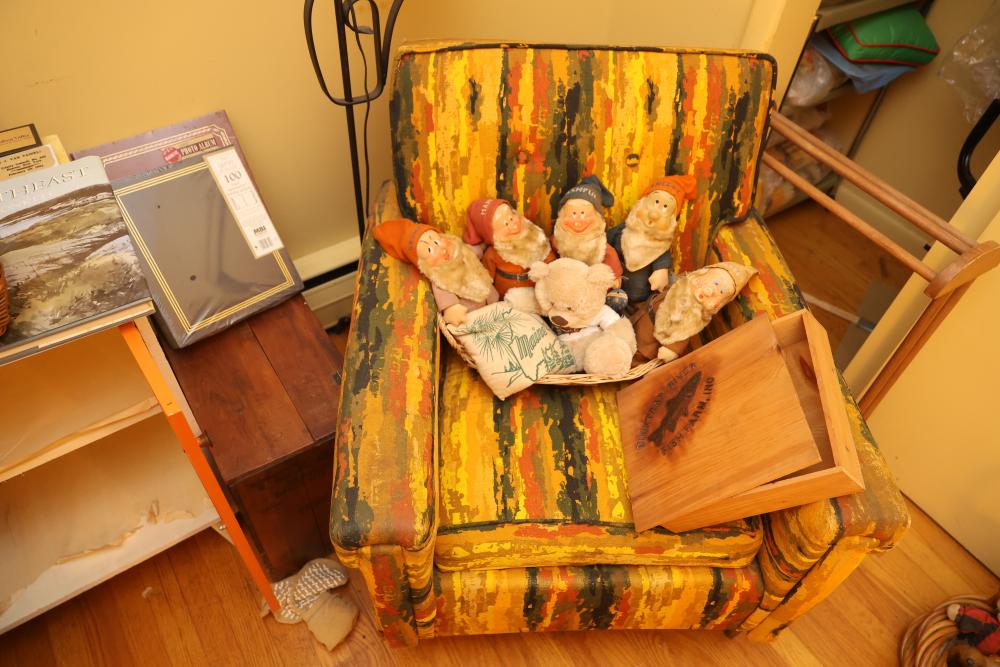 Colored Furniture, Sewing Supplies, Remington Typewriter, Dolls, and home decor items including a multi-colored dresser, a four drawer dresser, Remington Typewriter, an upholstered lounge chair with removable cushion, four pieces of framed wall art, a Ringling Bros Circus Poster, two unused photo albums, decorative figurines, mirrors, oil-lantern style electric lamp, upholstered chair, sewing supplies, fabric pieces, gift-wrapping ribbons, and an ironing board. Largest item is 40in x 15in x 30in. Does not include items from other lots. Buyer is responsible for all help and materials necessary for safe and proper removal. Buyer must take all. Items located on first floor, no stairs. Pickup only.