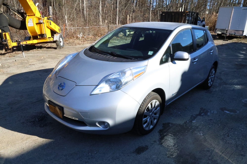Items include 2017 Nissan Leaf SV electric hatchback; Sewer Equipment Co. of America model 747-SP2000 trailer jet & electric-powered Genie personnel lift on a rolling base. Items are located in Mount Kisco, NY.