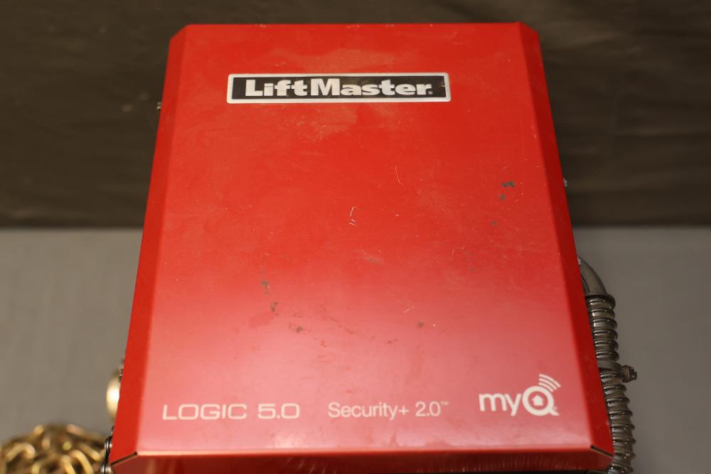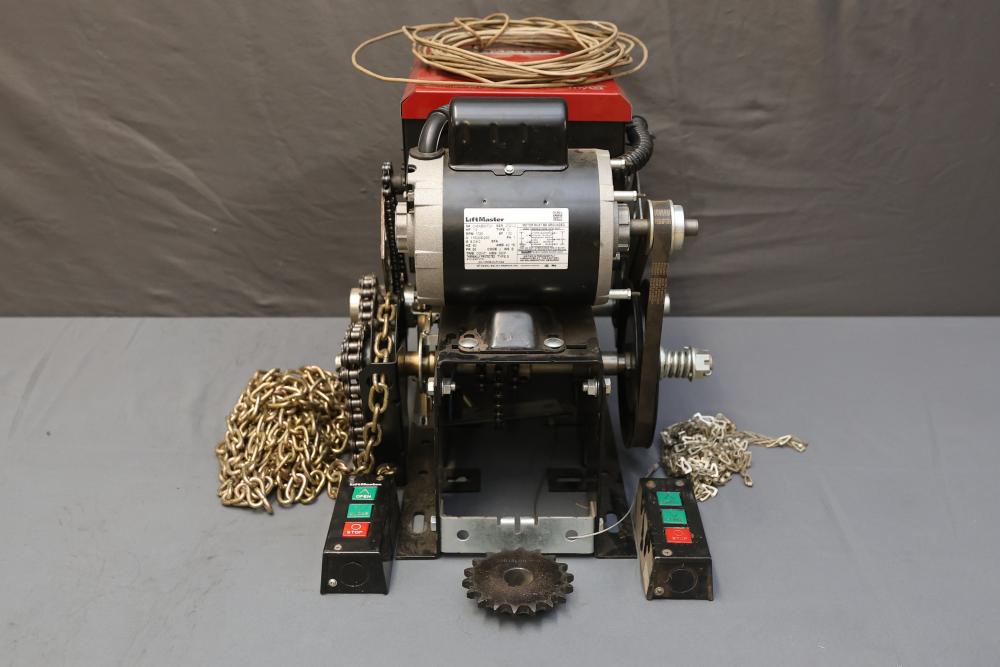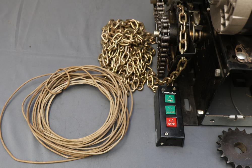 LiftMaster H501L5 Hoist Industrial Garage Door Opener. Features a 1/2 HP motor, Logic 5.0, and Security+ 2.0 technologies, with MyQ compatibility. Includes a manual chain hoist, control switch with open, close, and stop functions, chain, sprocket, and necessary wiring. UL Listed. Pickup only.