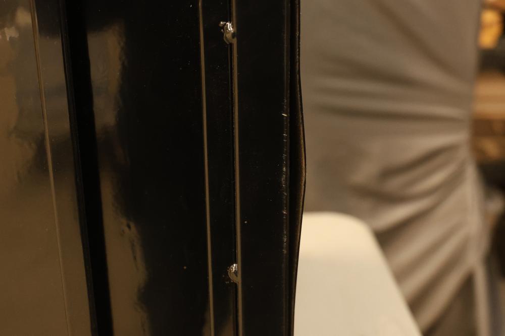 Husky HPR063TLOCKERBL black tool locker with visible scratches and dents featuring a sturdy construction with a secure locking mechanism. Model #HPR063TLOCKERBL. Pickup only.