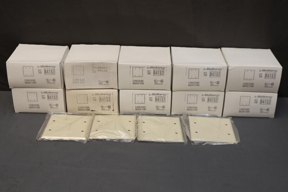 Mulberry 84152 2 Gang Blank Metal Ivory Wall Plate - 104 Total Units. Includes 10 cases of 10 units each plus 4 loose units for a total of 104. Made of durable metal with an ivory finish. Smooth design with mounting screws included. Pickup only.