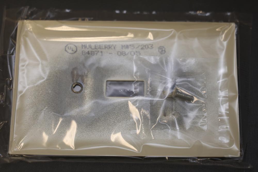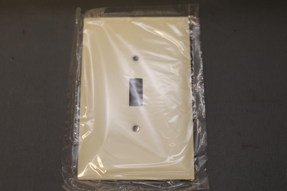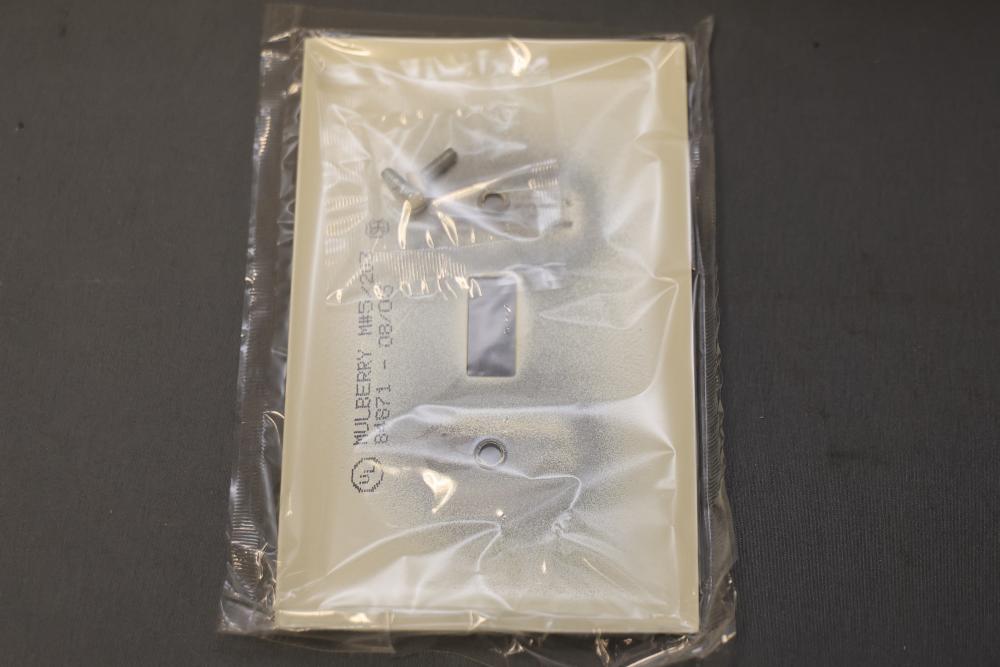 Mulberry 84871 1 Gang Toggle Switch Wall Plate in Ivory - Jumbo Size - 5 cases of 25 each, totaling 125 plates. Each plate is individually wrapped, and screws are included. Designed for single toggle switches, these jumbo-size wall plates are ideal for larger coverage. Pickup only.