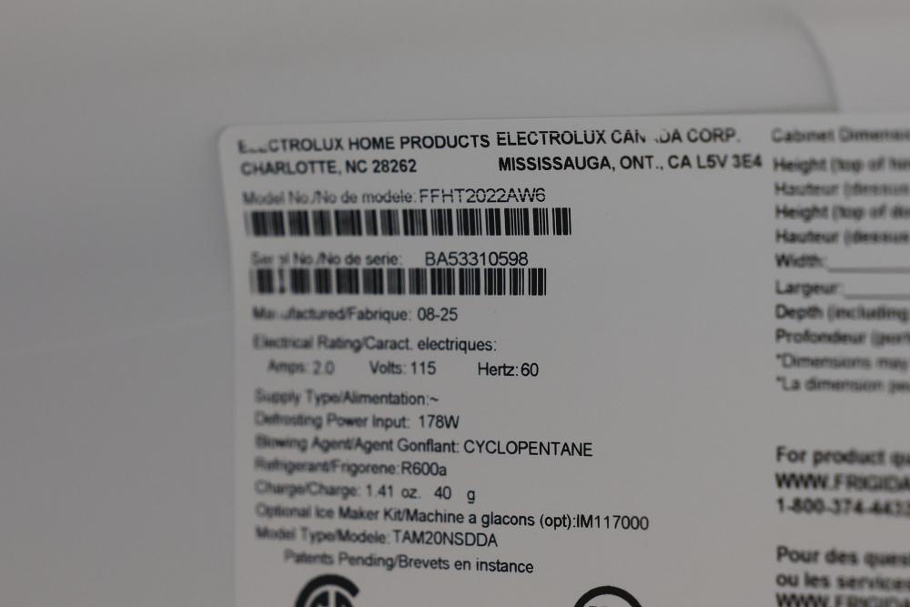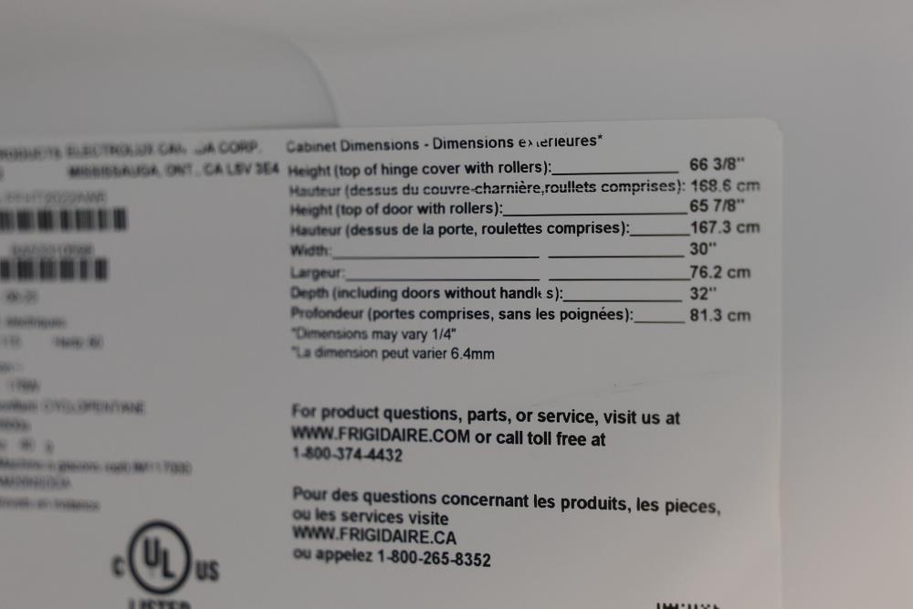 Frigidaire FFHT2022AW 30 Inch Freestanding Top Freezer Refrigerator with a capacity of 20 cubic feet. There is interference between the refrigerator door and freezer door when opened at the same time. Condition may vary, see photos for details. Pickup only.