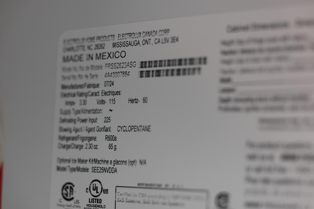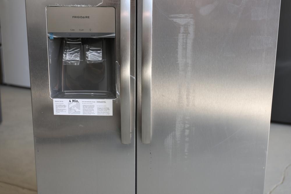 Frigidaire Side-by-Side Refrigerator Model FRSS2623AS 36 Inches with a Capacity of 26 Cubic Feet. Condition may vary, see photos for details. Pickup only.