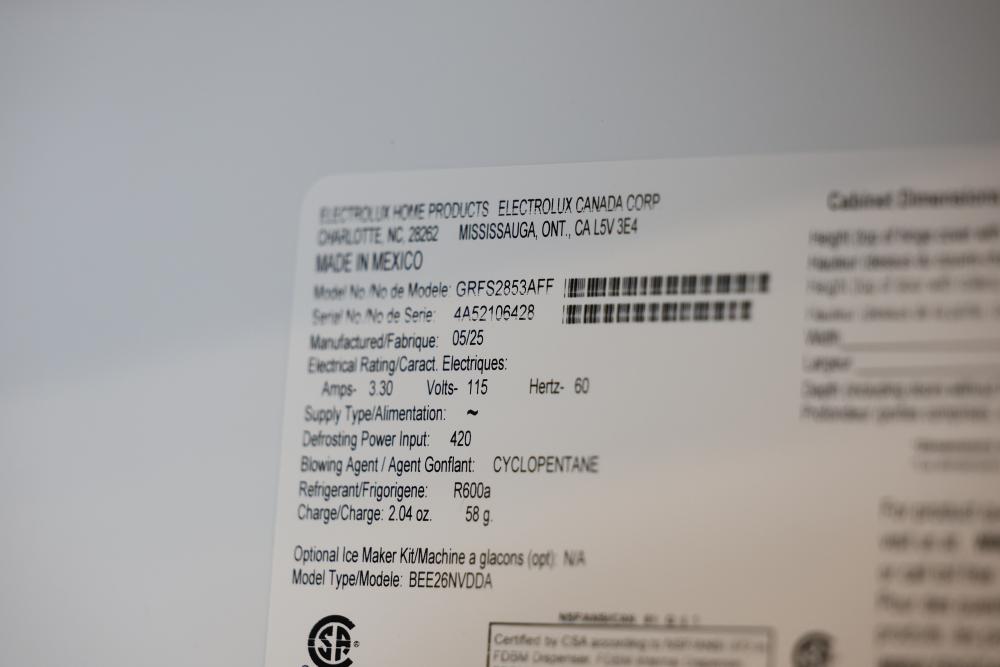 Frigidaire GRFS2853AF 36 Inch French Door Refrigerator with Stainless Steel Finish and capacity of 27.8 cubic feet. Features a French door design and stainless steel construction. Condition may vary. See photos for details. Pickup only.