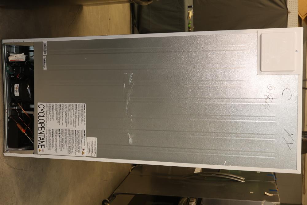 Frigidaire FFFU13F2VW 28 Inch Freestanding Upright Garage Freezer with 13 cubic feet capacity. The freezer features a robust design suitable for garage placement, providing ample storage space. Condition may vary, see photos for details. Pickup only.