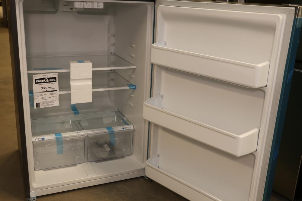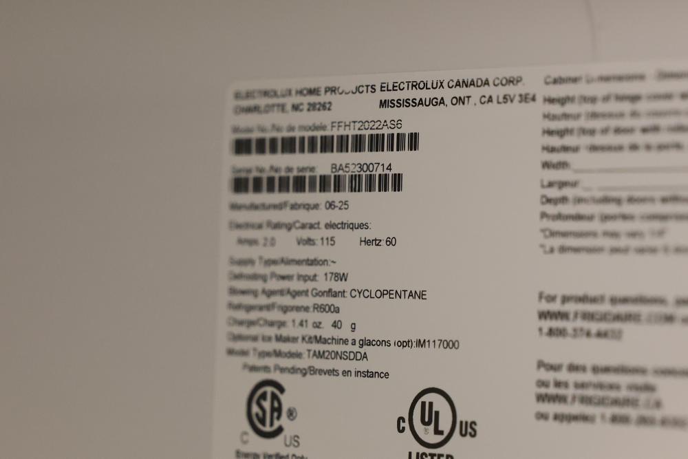 Frigidaire FFHT2022AS 30 Inch Garage Ready Freestanding Top Freezer Refrigerator in Stainless Steel. Features a spacious top freezer and bottom refrigerator compartment with adjustable shelves. Stainless steel finish with protective blue film intact. See photos for details and condition. Pickup only.
