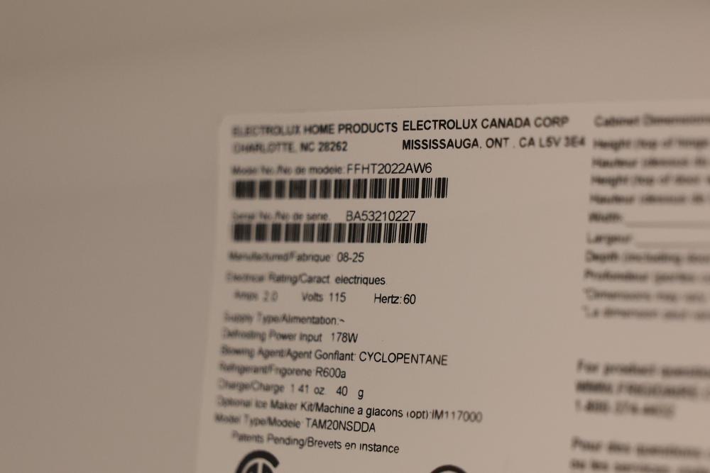 Frigidaire FFHT2022AW 30 Inch Freestanding Top Freezer Refrigerator, 20 cubic feet deep. Features include a spacious interior and a two-door design with storage compartments. Condition may vary, see photos for additional details. Pickup only.