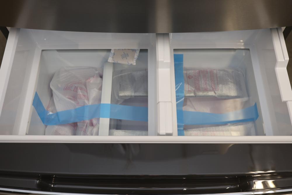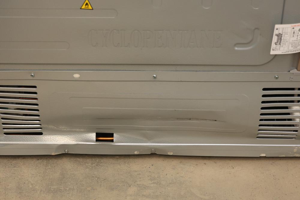 Frigidaire Gallery GRMC2273CF 36 Inch Counter-Depth 4-Door French Door Refrigerator in Stainless Steel. Features include a built-in water and ice dispenser, multiple storage compartments, and an advanced air filtration system. Condition may vary, please see photos for details. Pickup only.