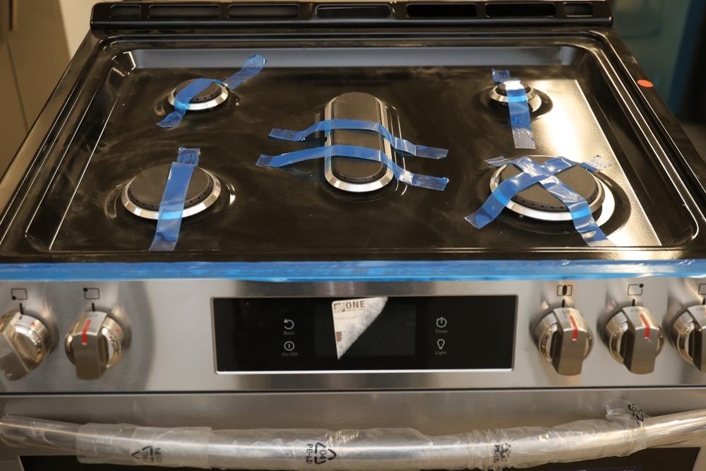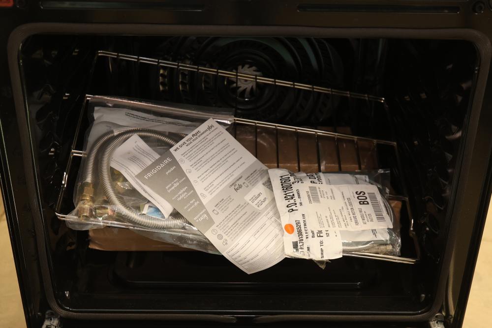 Frigidaire Gallery GCFG3060BF 30 Inch 5 Burner Slide-In Gas Range with Total Convection and Air Fry, in Smudge-Proof Stainless Steel. Includes a modern design with five burners and advanced cooking functionalities, including air fry. Condition may vary, see photos for details. Pickup only.