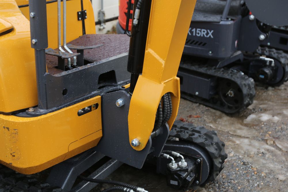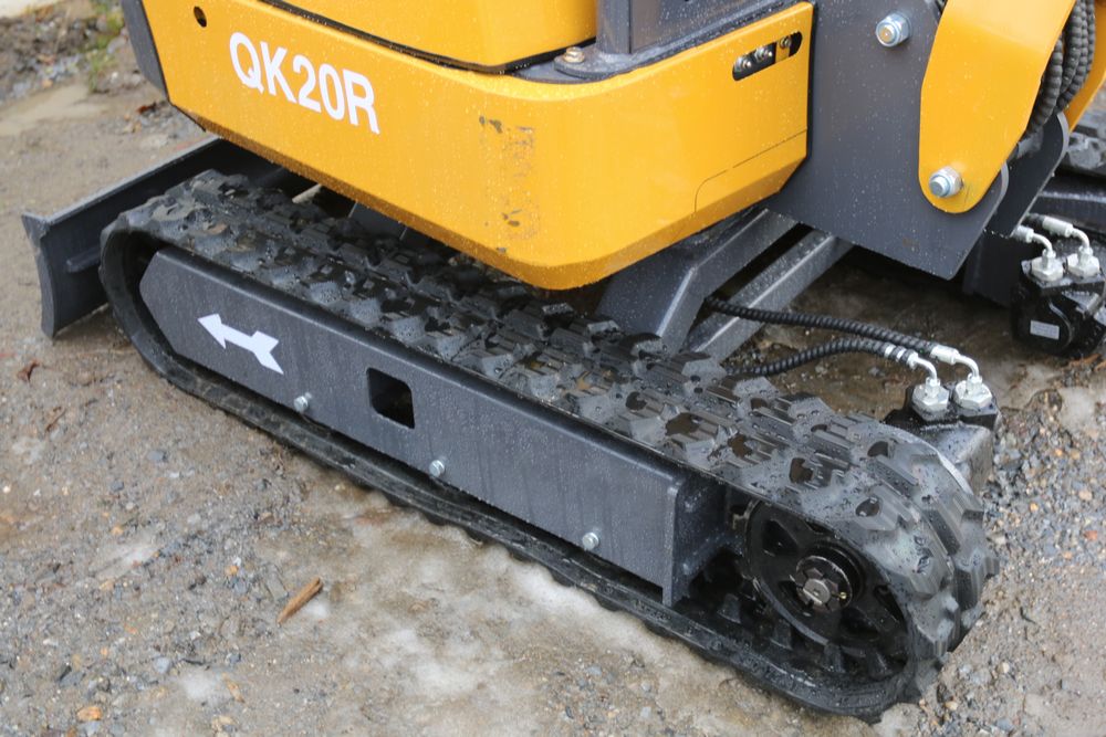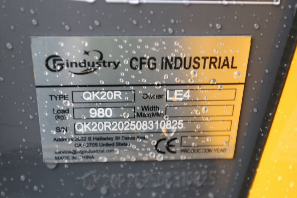 New 2025 CFG Industrial gas powered mini Excavator model QK20R with bucket, dozer blade, hydraulic thumb, aux hydraulics, RATO 23HP, and canopy cover. Hours reading less than 1 hour.