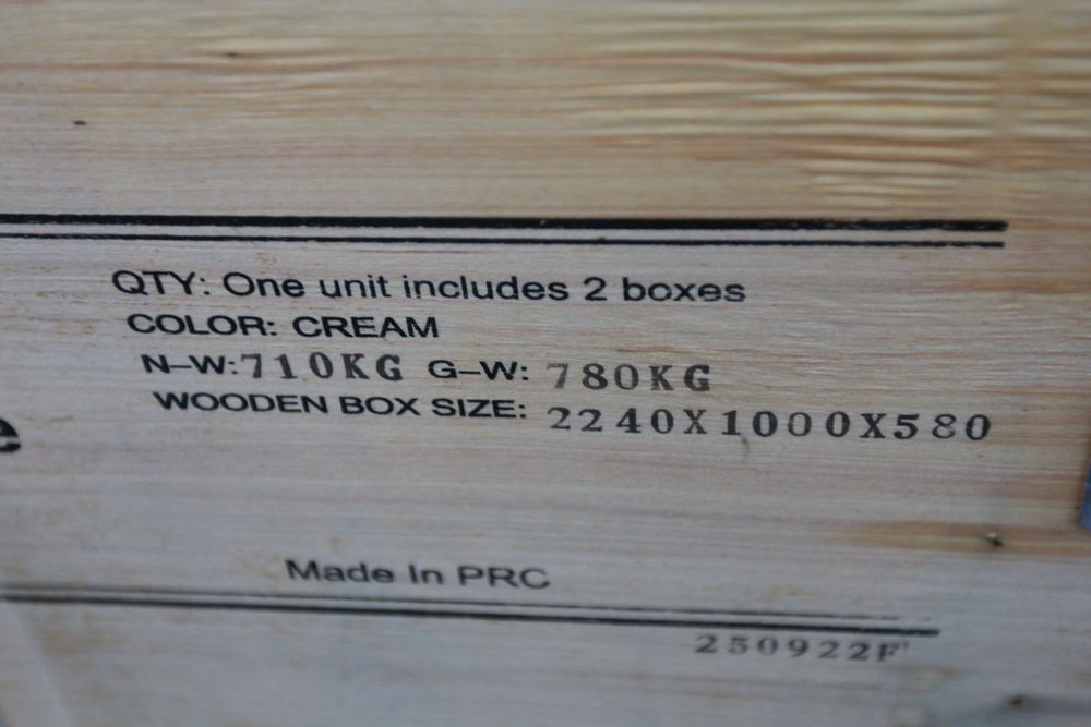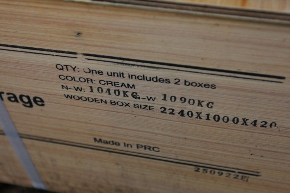 New KJ unused 45ft. x 25ft. double garage steel barn shed model K4525, in wood crate.