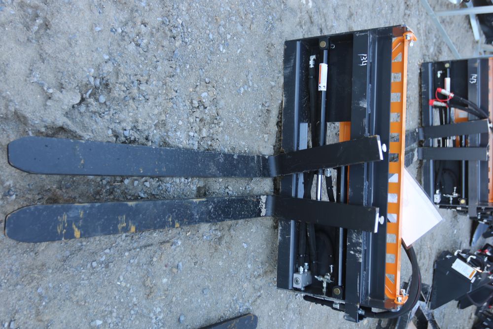 New 2025 Wolverine skid steer pallet fork attachment hydraulic adjustment, model PFA-11-3300G, 48" fork adjustment.