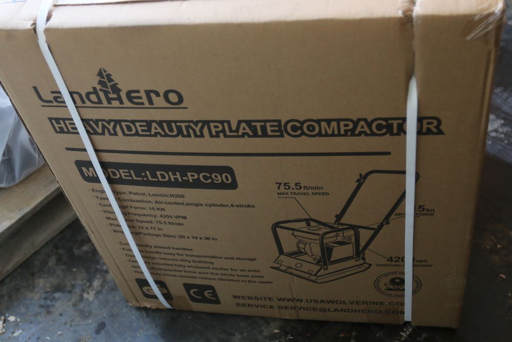 New 2025 LandHonor heavy duty plate compactor, model LDH-PC90H, 6.5HP Loncin G200F engine.