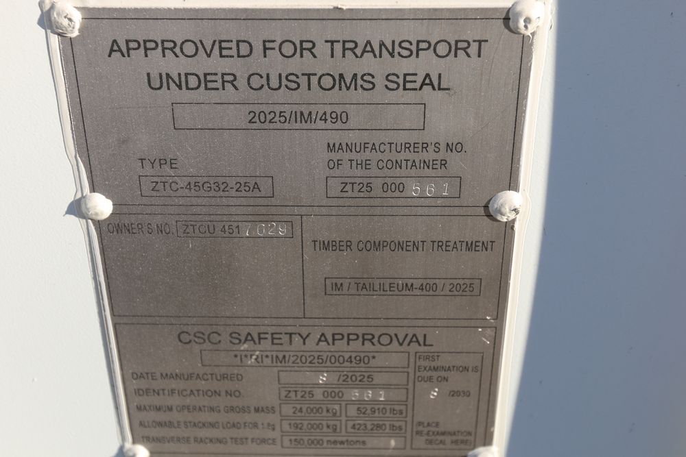 New 2025 40' High cube multi-door container, two side doors, one end door. Container # ZTCU4517029.