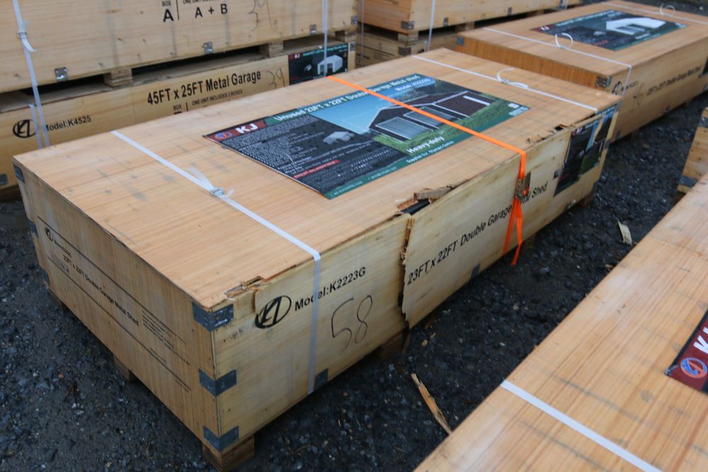 New 2025 KJ unused 20ftx12ft livestock metal shed model K1912, in wood crate.