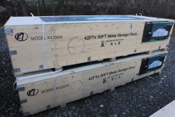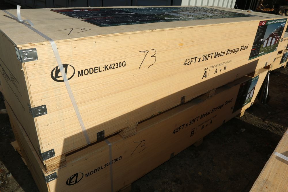 New 2025 Metal Storage Shed 42FT x 30FT Metal Storage Shed model K4230G, in wooden crate.