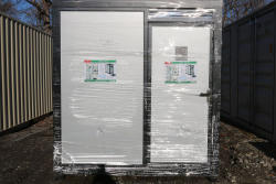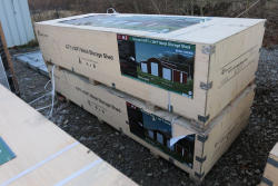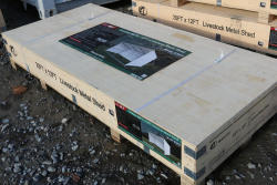New livestock metal shed, 11'Tx12'Wx25'L, model K2512, in wood crate.