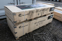 New livestock metal shed, 11'Tx12'Wx25'L, model K2512, in wood crate.