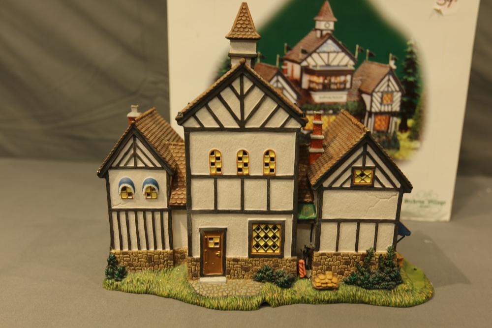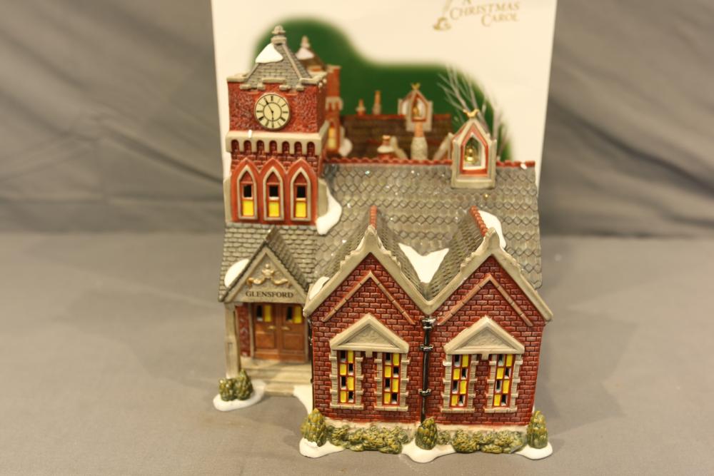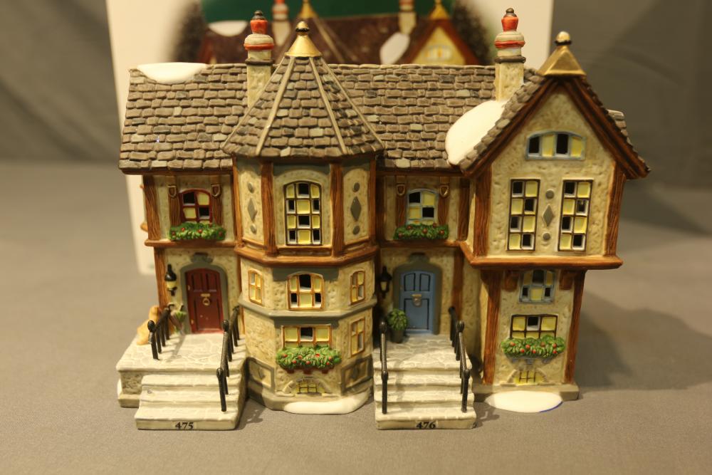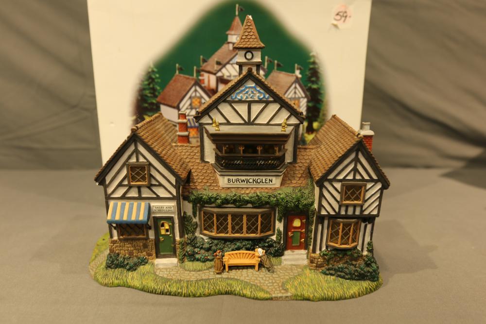 Department 56 Village Buildings. Includes "Howard Street Row Houses," "Burwickglen Golf Clubhouse," "Glensford School" with Original Boxes. Conditions may vary.