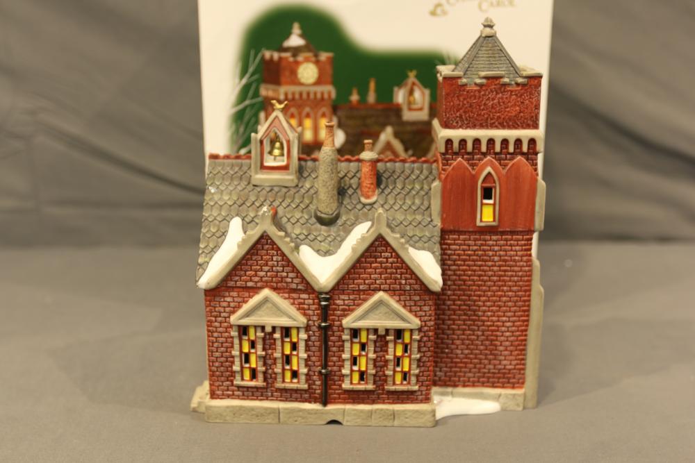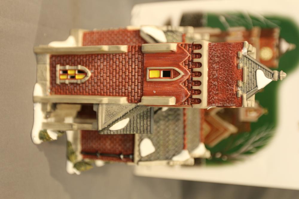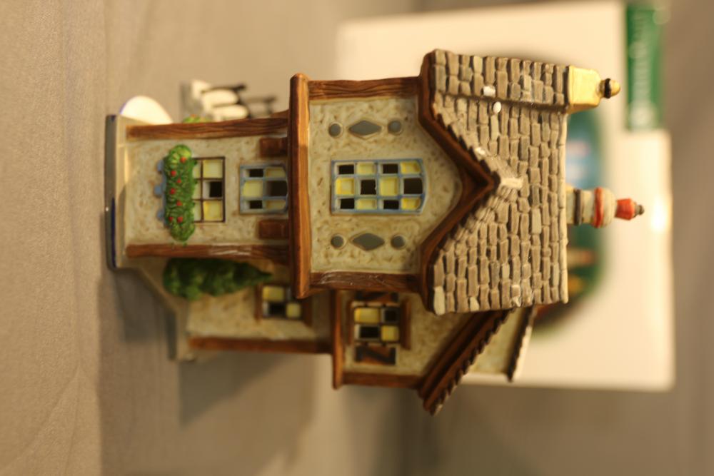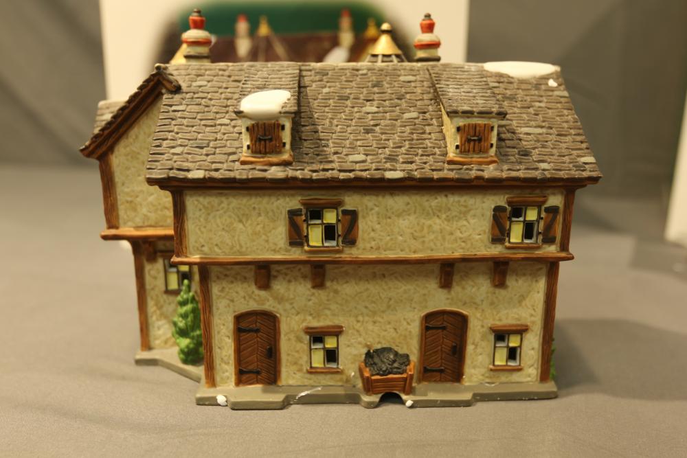 Items are Department 56 Dickens Village Series Buildings & Accessories from one collector. Items include "Stratford Holiday Pies and Tarts"; "Tegan's Toy Shoppe," "Burwickglen Golf Clubhouse," illuminated buildings: Brandon Mill, Devonshire Creamery," "Boar's Bacon & Candied Hams"; Porcelain Buildings & Accessories. Includes "A Christmas Carol" series: "M Fezziwig Warehouse," "Scrooge & Marley," Heritage Village Figurines & Accessories. Includes various figurines like "Not too Fast, Please," "Town Blacksmith," "To the Manor Born"; Village Series and Village Accessories Figurines. Includes "Buyer one for Prosperity," "Backyard Bird Houses,"; holiday decorations: snowmen figurines, holiday-themed trees, Christmas lights & more. Items are located in Pleasant Valley, NY.