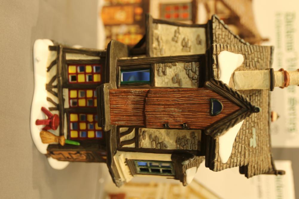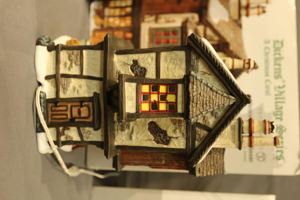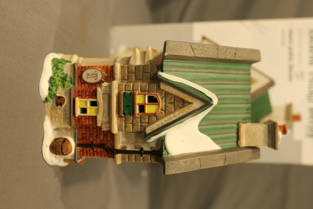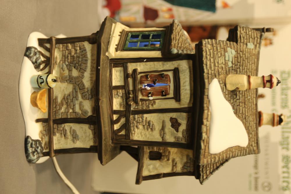 Items are Department 56 Dickens Village Series Buildings & Accessories from one collector. Items include "Stratford Holiday Pies and Tarts"; "Tegan's Toy Shoppe," "Burwickglen Golf Clubhouse," illuminated buildings: Brandon Mill, Devonshire Creamery," "Boar's Bacon & Candied Hams"; Porcelain Buildings & Accessories. Includes "A Christmas Carol" series: "M Fezziwig Warehouse," "Scrooge & Marley," Heritage Village Figurines & Accessories. Includes various figurines like "Not too Fast, Please," "Town Blacksmith," "To the Manor Born"; Village Series and Village Accessories Figurines. Includes "Buyer one for Prosperity," "Backyard Bird Houses,"; holiday decorations: snowmen figurines, holiday-themed trees, Christmas lights & more. Items are located in Pleasant Valley, NY.