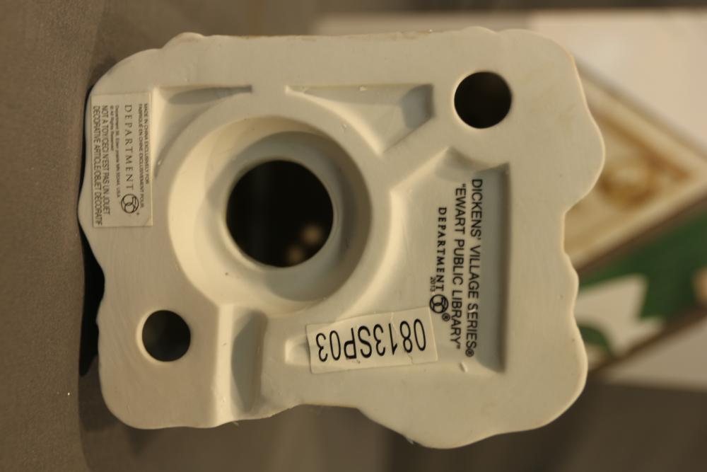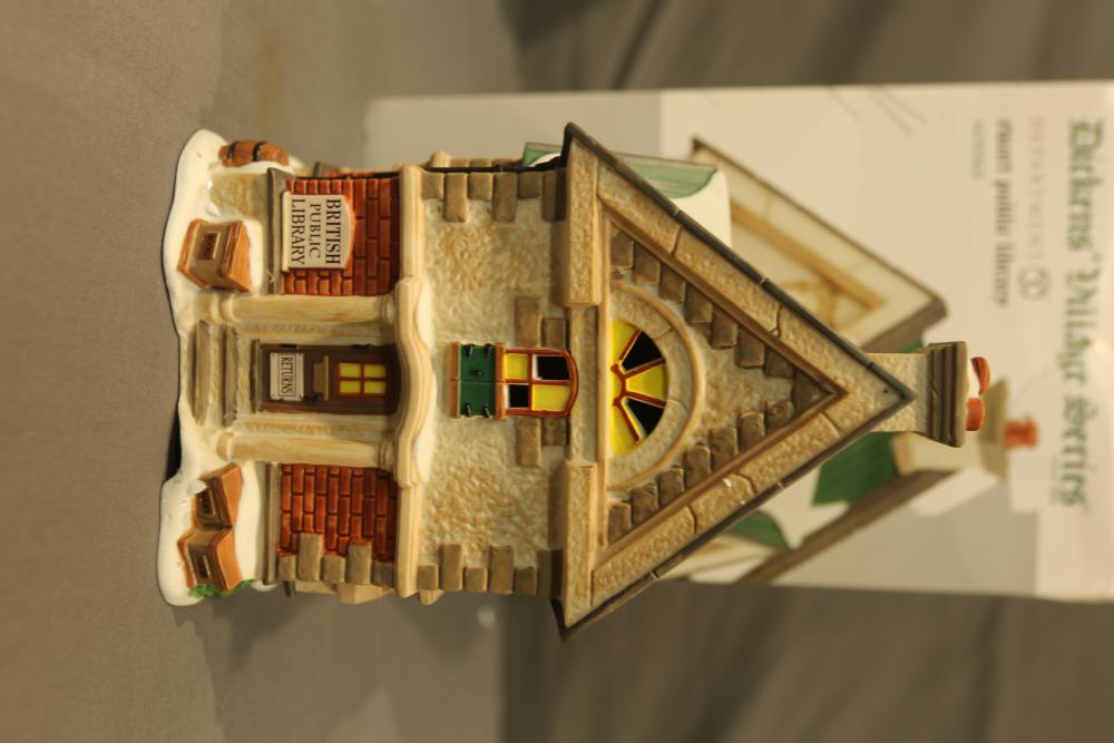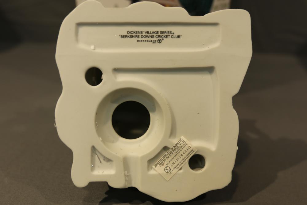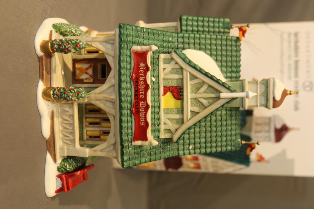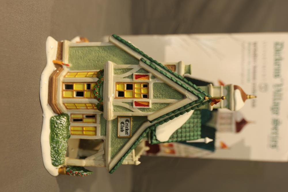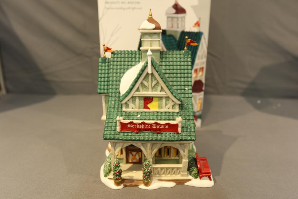 Department 56 Dickens' Village Series buildings. Include "Berkshire Downs Cricket Club," "Ewart Public Library," and "Ebenezer's Brownstone", with original boxes. Conditions may vary.