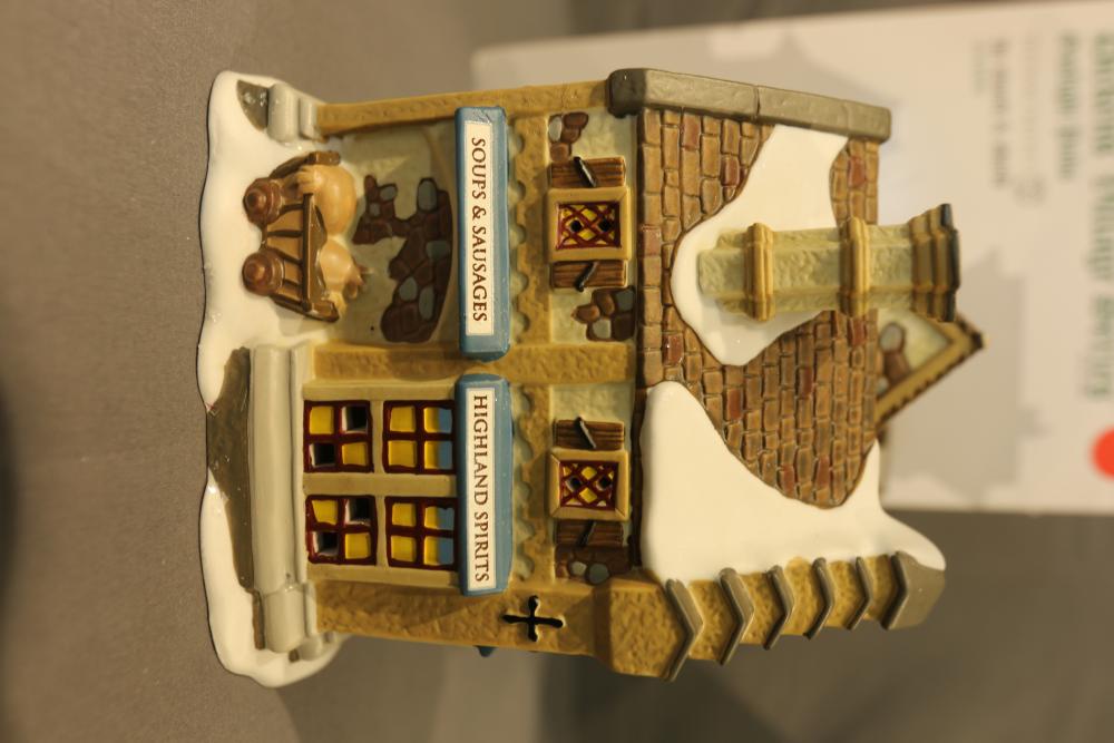 Items are Department 56 Dickens Village Series Buildings & Accessories from one collector. Items include "Stratford Holiday Pies and Tarts"; "Tegan's Toy Shoppe," "Burwickglen Golf Clubhouse," illuminated buildings: Brandon Mill, Devonshire Creamery," "Boar's Bacon & Candied Hams"; Porcelain Buildings & Accessories. Includes "A Christmas Carol" series: "M Fezziwig Warehouse," "Scrooge & Marley," Heritage Village Figurines & Accessories. Includes various figurines like "Not too Fast, Please," "Town Blacksmith," "To the Manor Born"; Village Series and Village Accessories Figurines. Includes "Buyer one for Prosperity," "Backyard Bird Houses,"; holiday decorations: snowmen figurines, holiday-themed trees, Christmas lights & more. Items are located in Pleasant Valley, NY.