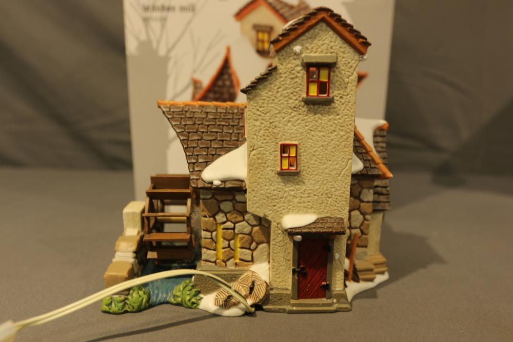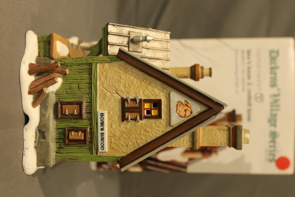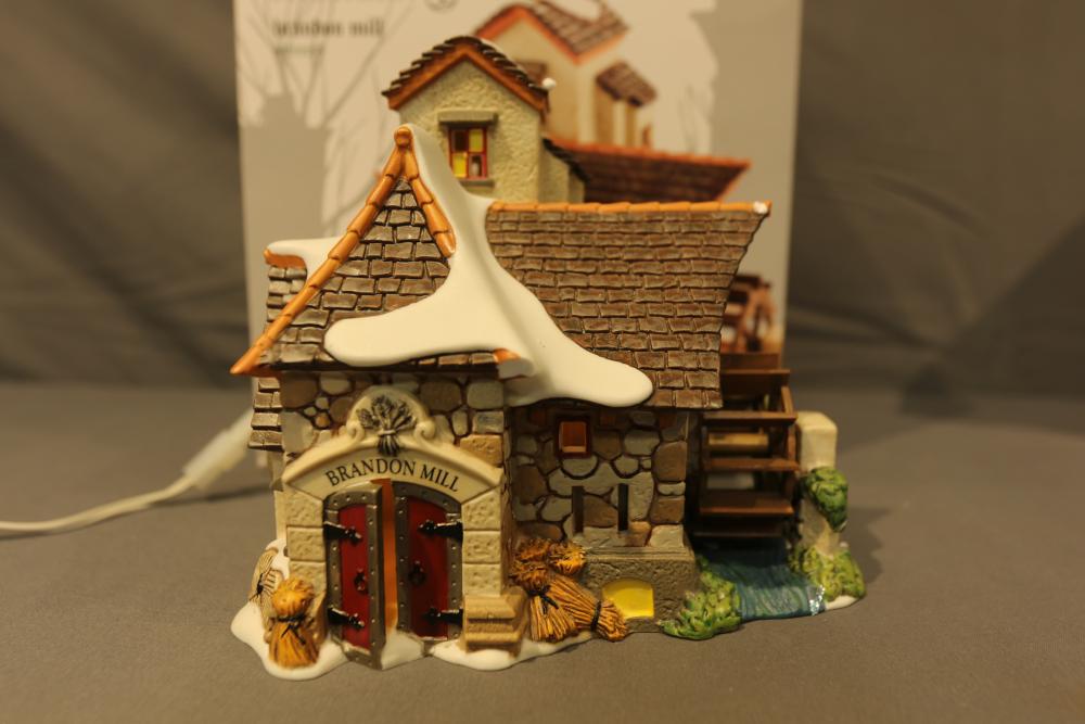 Department 56 Dickens Village Series Illuminated Buildings. Includes Brandon Mill, Devonshire Creamery," "Boar's Bacon & Candied Hams" with original boxes. Conditions may vary.