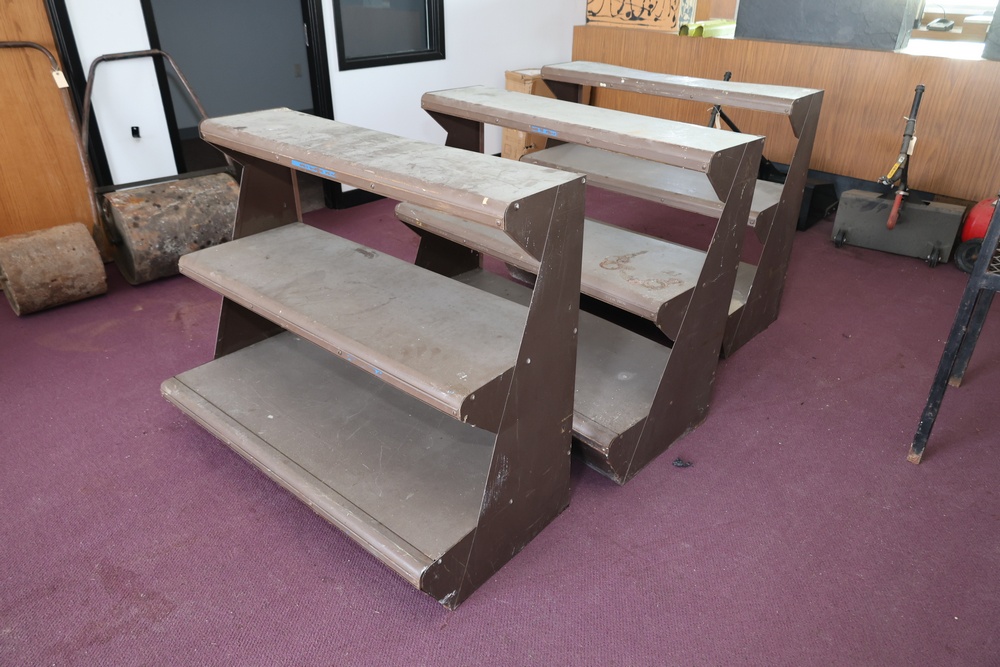 Set of three metal shelving units, each approx. 48" x 24" tall.