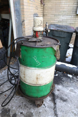 Graco quiet Fire-Ball air powered pump, power greaser with grease gun and 400lb barrel of Castrol Pyroplex red high performance EP grease UIGI 2, part number 52259. Seller reports some grease has been used, barrel is mostly full, exact level unknown.