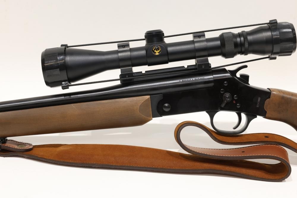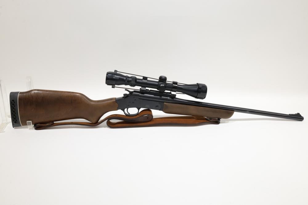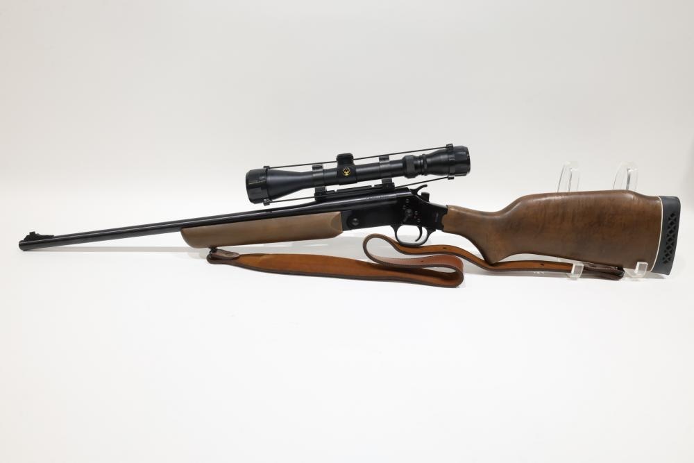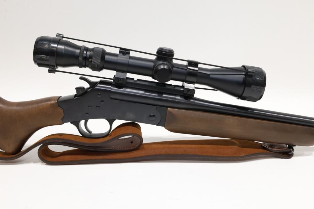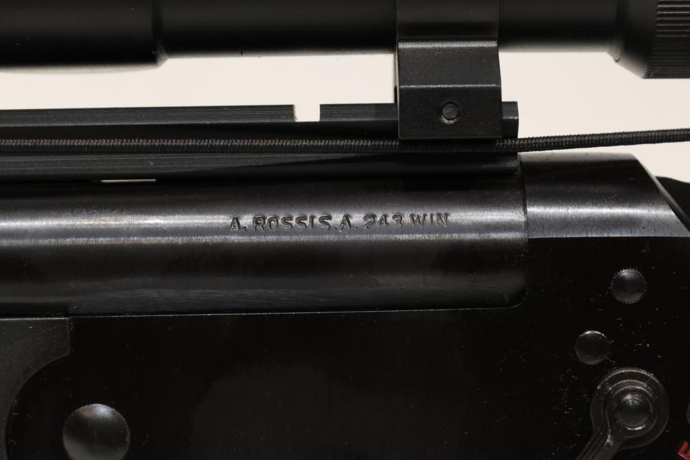 Rossi single-shot rifle chambered in .243 WIN, with wooden stock, rubber recoil pad, and leather sling, equipped with a Simmons 3–9x40 scope. Serial Number CA016594. All lots are subject to all applicable laws at the time of transfer. NOTE: Semi automatic rifles and all handguns require a license in NYS. There is a $35 transfer fee per long gun. There is a $40 transfer fee per hand gun. There is a $20 transfer fee per ammunition lot. If you fail the background check, the transfer fee still applies, and you are still required to make payment and then reconsign the lot to auction. FFL dealers are not exempt from these fees. A background check will be required for all buyers purchasing a firearm and/or ammunition. NYS charges a background check fee for all firearms and ammunition. The fee is $9 for firearms and $2.50 for ammunition. The NYS fee is per background check NOT per lot, will be collected directly by Civil Armory, and is in addition to transfer fees. All lots are subject to all applicable laws at the time of transfer. NOTE: Semi automatic rifles and all handguns require a license in NYS. There is a $35 transfer fee per long gun. There is a $40 transfer fee per hand gun. There is a $20 transfer fee per ammunition lot. If you fail the background check, the transfer fee still applies, and you are still required to make payment and then reconsign the lot to auction. FFL dealers are not exempt from these fees. A background check will be required for all buyers purchasing a firearm and/or ammunition. NYS charges a background check fee for all firearms and ammunition. The fee is $9 for firearms and $2.50 for ammunition. The NYS fee is per background check NOT per lot, will be collected directly by Civil Armory, and is in addition to transfer fees.