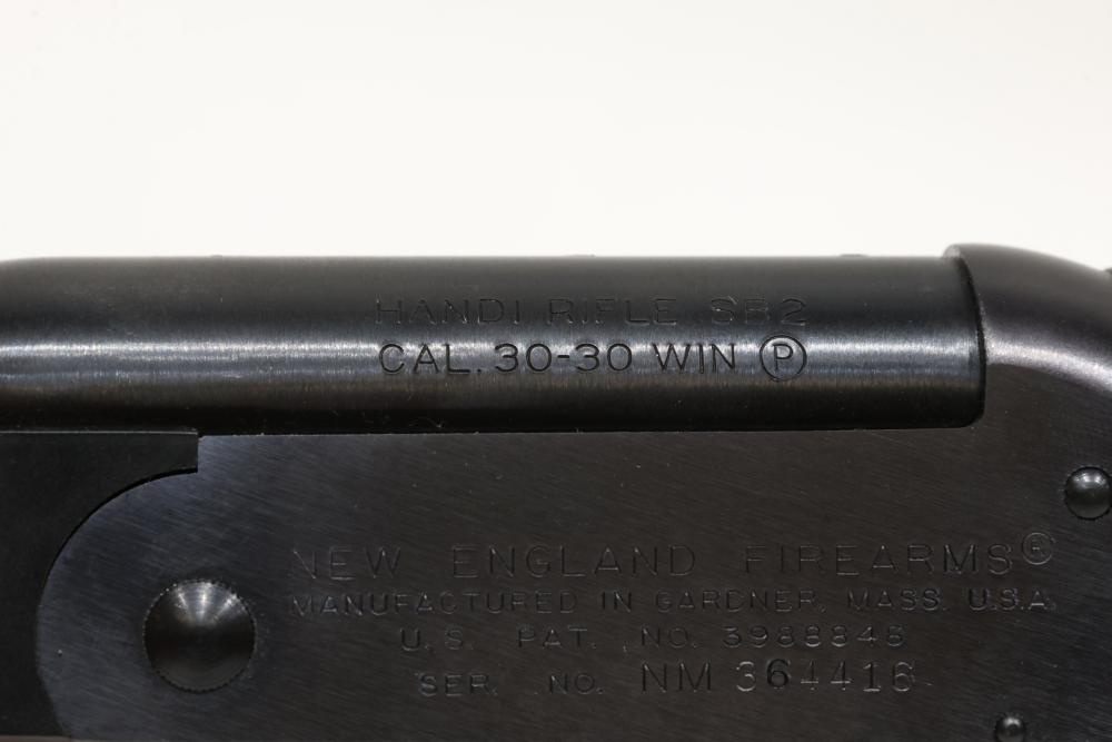 New England Firearms Handi Rifle SB2 break-action rifle chambered in .30-30 WIN, with wooden stock, rubber recoil pad. Serial Number NM364416. All lots are subject to all applicable laws at the time of transfer. NOTE: Semi automatic rifles and all handguns require a license in NYS. There is a $35 transfer fee per long gun. There is a $40 transfer fee per hand gun. There is a $20 transfer fee per ammunition lot. If you fail the background check, the transfer fee still applies, and you are still required to make payment and then reconsign the lot to auction. FFL dealers are not exempt from these fees. A background check will be required for all buyers purchasing a firearm and/or ammunition. NYS charges a background check fee for all firearms and ammunition. The fee is $9 for firearms and $2.50 for ammunition. The NYS fee is per background check NOT per lot, will be collected directly by Civil Armory, and is in addition to transfer fees. All lots are subject to all applicable laws at the time of transfer. NOTE: Semi automatic rifles and all handguns require a license in NYS. There is a $35 transfer fee per long gun. There is a $40 transfer fee per hand gun. There is a $20 transfer fee per ammunition lot. If you fail the background check, the transfer fee still applies, and you are still required to make payment and then reconsign the lot to auction. FFL dealers are not exempt from these fees. A background check will be required for all buyers purchasing a firearm and/or ammunition. NYS charges a background check fee for all firearms and ammunition. The fee is $9 for firearms and $2.50 for ammunition. The NYS fee is per background check NOT per lot, will be collected directly by Civil Armory, and is in addition to transfer fees.