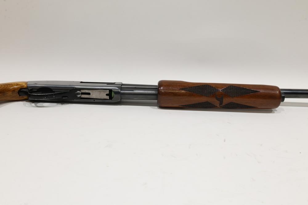 High Standard Flite King Deluxe Model K2011 semi-automatic shotgun chambered in 12 gauge, featuring a blued finish with ventilated rib barrel and checkered wood stock. Serial number 3035894. All lots are subject to all applicable laws at the time of transfer. NOTE: Semi automatic rifles and all handguns require a license in NYS. There is a $35 transfer fee per long gun. There is a $40 transfer fee per hand gun. There is a $20 transfer fee per ammunition lot. If you fail the background check, the transfer fee still applies, and you are still required to make payment and then reconsign the lot to auction. FFL dealers are not exempt from these fees. A background check will be required for all buyers purchasing a firearm and/or ammunition. NYS charges a background check fee for all firearms and ammunition. The fee is $9 for firearms and $2.50 for ammunition. The NYS fee is per background check NOT per lot, will be collected directly by Civil Armory, and is in addition to any transfer All lots are subject to all applicable laws at the time of transfer. NOTE: Semi automatic rifles and all handguns require a license in NYS. There is a $35 transfer fee per long gun. There is a $40 transfer fee per hand gun. There is a $20 transfer fee per ammunition lot. If you fail the background check, the transfer fee still applies, and you are still required to make payment and then reconsign the lot to auction. FFL dealers are not exempt from these fees. A background check will be required for all buyers purchasing a firearm and/or ammunition. NYS charges a background check fee for all firearms and ammunition. The fee is $9 for firearms and $2.50 for ammunition. The NYS fee is per background check NOT per lot, will be collected directly by Civil Armory, and is in addition to any transfer