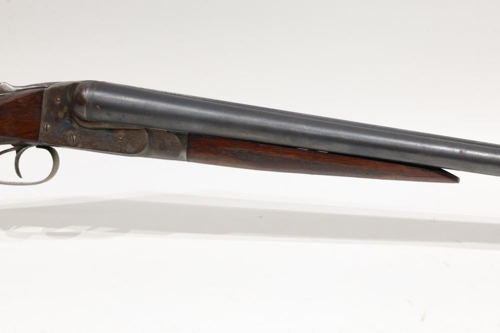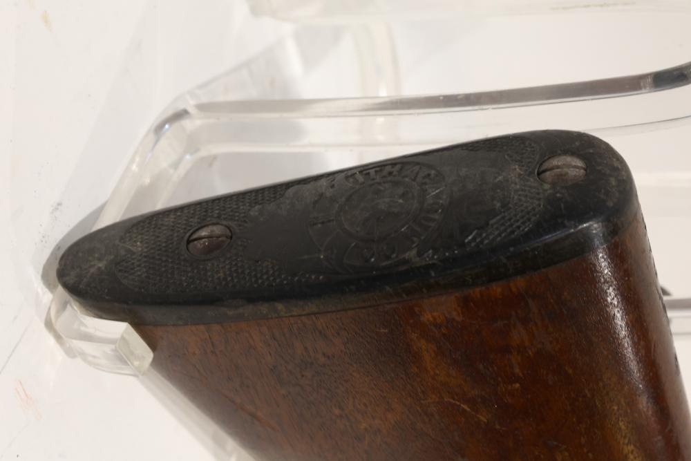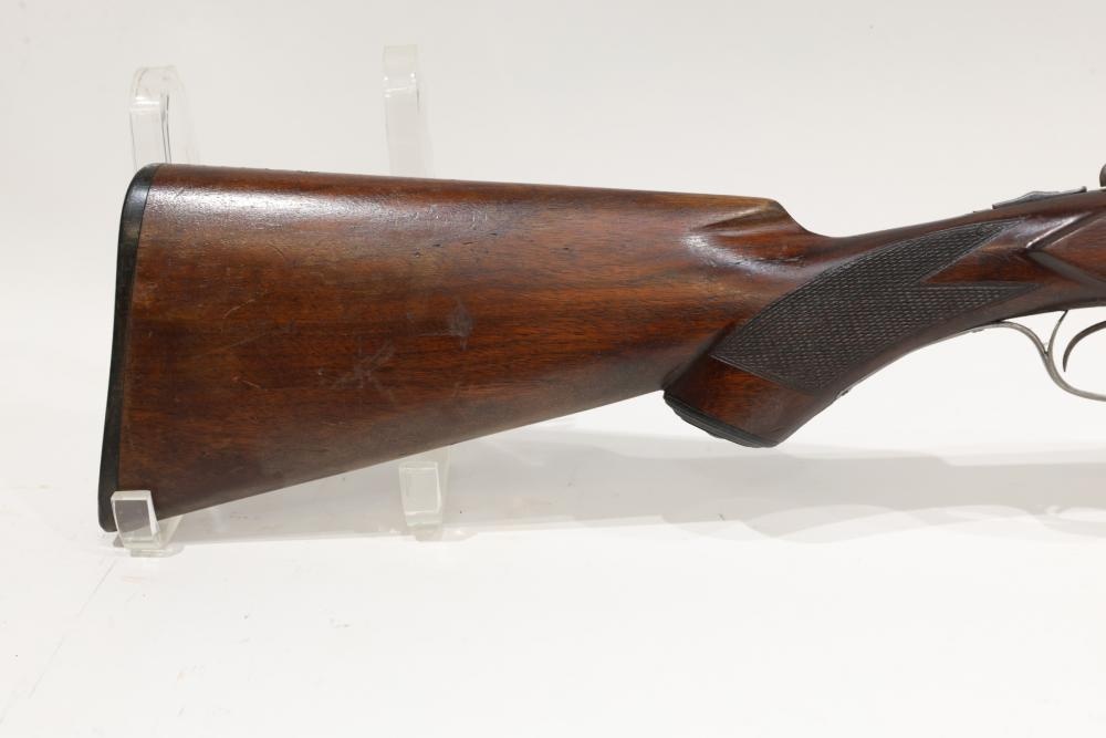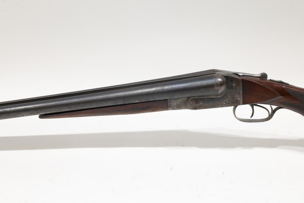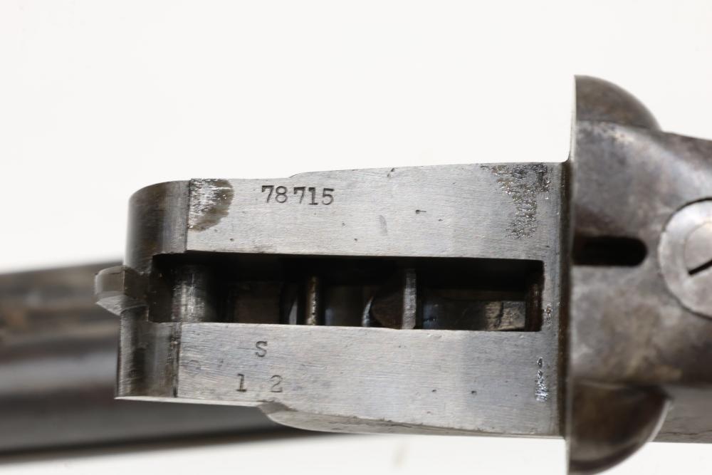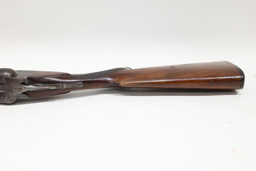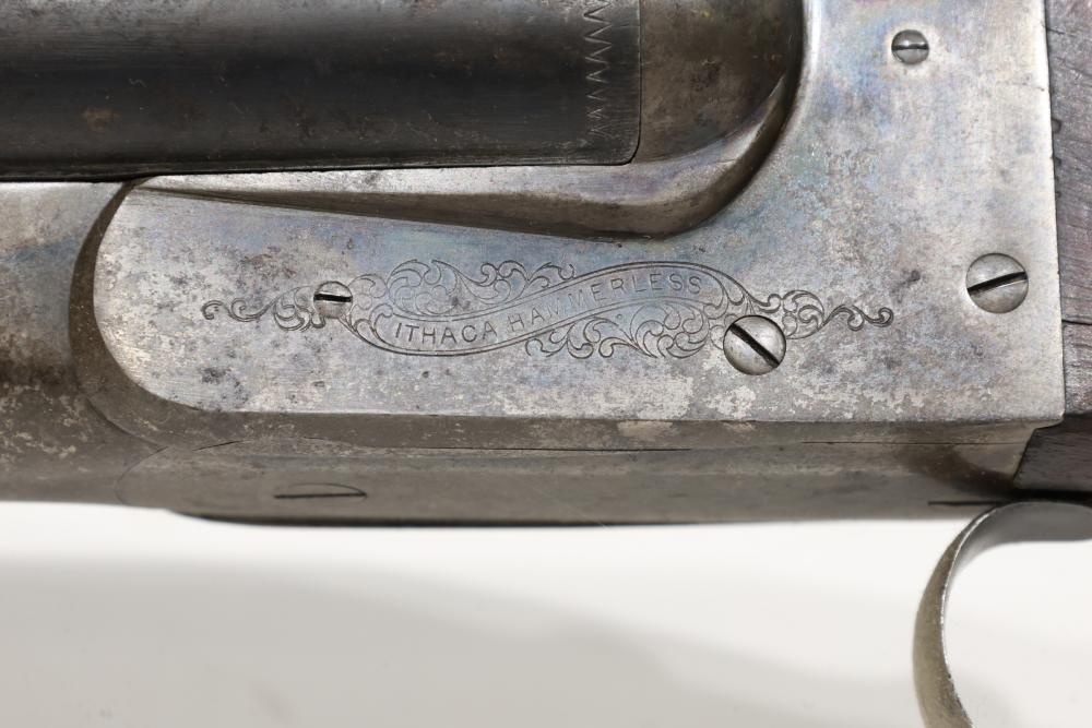 Ithaca Hammerless double-barrel shotgun likely chambered in 12 gauge, with a checkered wood stock, Ithaca-logo butt plate, and a single front bead sight. Serial Number 78715. All lots are subject to all applicable laws at the time of transfer. NOTE: Semi automatic rifles and all handguns require a license in NYS. There is a $35 transfer fee per long gun. There is a $40 transfer fee per hand gun. There is a $20 transfer fee per ammunition lot. If you fail the background check, the transfer fee still applies, and you are still required to make payment and then reconsign the lot to auction. FFL dealers are not exempt from these fees. A background check will be required for all buyers purchasing a firearm and/or ammunition. NYS charges a background check fee for all firearms and ammunition. The fee is $9 for firearms and $2.50 for ammunition. The NYS fee is per background check NOT per lot, will be collected directly by Civil Armory, and is in addition to transfer fees. All lots are subject to all applicable laws at the time of transfer. NOTE: Semi automatic rifles and all handguns require a license in NYS. There is a $35 transfer fee per long gun. There is a $40 transfer fee per hand gun. There is a $20 transfer fee per ammunition lot. If you fail the background check, the transfer fee still applies, and you are still required to make payment and then reconsign the lot to auction. FFL dealers are not exempt from these fees. A background check will be required for all buyers purchasing a firearm and/or ammunition. NYS charges a background check fee for all firearms and ammunition. The fee is $9 for firearms and $2.50 for ammunition. The NYS fee is per background check NOT per lot, will be collected directly by Civil Armory, and is in addition to transfer fees.