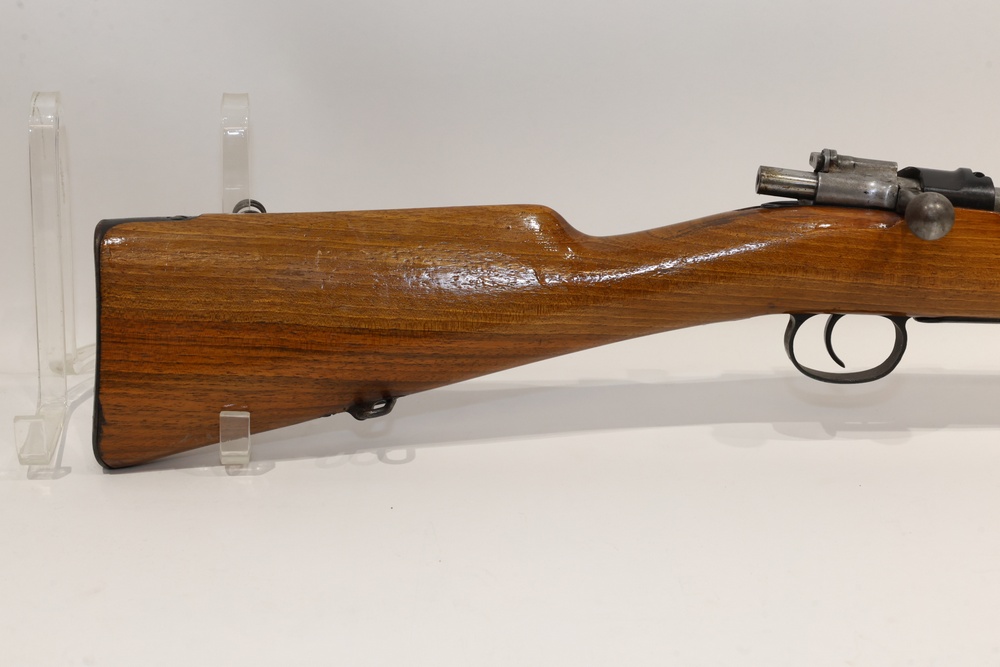 1915 Oviedo bolt action rifle likely be chambered in 7×57mm Mauser, with a wood stock, metal butt plate. Serial Number 281504. All lots are subject to all applicable laws at the time of transfer. NOTE: Semi automatic rifles and all handguns require a license in NYS. There is a $35 transfer fee per long gun. There is a $40 transfer fee per hand gun. There is a $20 transfer fee per ammunition lot. If you fail the background check, the transfer fee still applies, and you are still required to make payment and then reconsign the lot to auction. FFL dealers are not exempt from these fees. A background check will be required for all buyers purchasing a firearm and/or ammunition. NYS charges a background check fee for all firearms and ammunition. The fee is $9 for firearms and $2.50 for ammunition. The NYS fee is per background check NOT per lot, will be collected directly by Civil Armory, and is in addition to any transfer All lots are subject to all applicable laws at the time of transfer. NOTE: Semi automatic rifles and all handguns require a license in NYS. There is a $35 transfer fee per long gun. There is a $40 transfer fee per hand gun. There is a $20 transfer fee per ammunition lot. If you fail the background check, the transfer fee still applies, and you are still required to make payment and then reconsign the lot to auction. FFL dealers are not exempt from these fees. A background check will be required for all buyers purchasing a firearm and/or ammunition. NYS charges a background check fee for all firearms and ammunition. The fee is $9 for firearms and $2.50 for ammunition. The NYS fee is per background check NOT per lot, will be collected directly by Civil Armory, and is in addition to any transfer