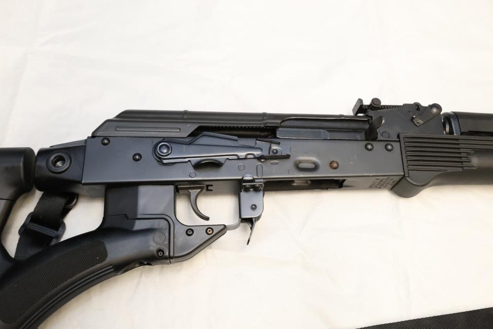 RAK-47 Riley Defense semi-automatic rifle chambered in 7.62×39, with a synthetic stock, rubber butt pad, and standard AK-pattern sights. Serial Number B27918. Not for transfer in NYS unless FFL & NYS dealer or Law Enforcement. All lots are subject to all applicable laws at the time of transfer. NOTE: Semi automatic rifles and all handguns require a license in NYS. There is a $35 transfer fee per long gun. There is a $40 transfer fee per hand gun. There is a $20 transfer fee per ammunition lot. If you fail the background check, the transfer fee still applies, and you are still required to make payment and then reconsign the lot to auction. FFL dealers are not exempt from these fees. A background check will be required for all buyers purchasing a firearm and/or ammunition. NYS charges a background check fee for all firearms and ammunition. The fee is $9 for firearms and $2.50 for ammunition. The NYS fee is per background check NOT per lot, will be collected directly by Civil Armory, and is in addition to transfer fees. All lots are subject to all applicable laws at the time of transfer. NOTE: Semi automatic rifles and all handguns require a license in NYS. There is a $35 transfer fee per long gun. There is a $40 transfer fee per hand gun. There is a $20 transfer fee per ammunition lot. If you fail the background check, the transfer fee still applies, and you are still required to make payment and then reconsign the lot to auction. FFL dealers are not exempt from these fees. A background check will be required for all buyers purchasing a firearm and/or ammunition. NYS charges a background check fee for all firearms and ammunition. The fee is $9 for firearms and $2.50 for ammunition. The NYS fee is per background check NOT per lot, will be collected directly by Civil Armory, and is in addition to transfer fees.