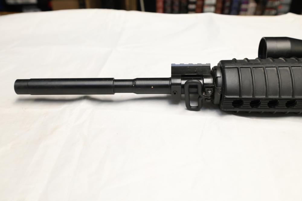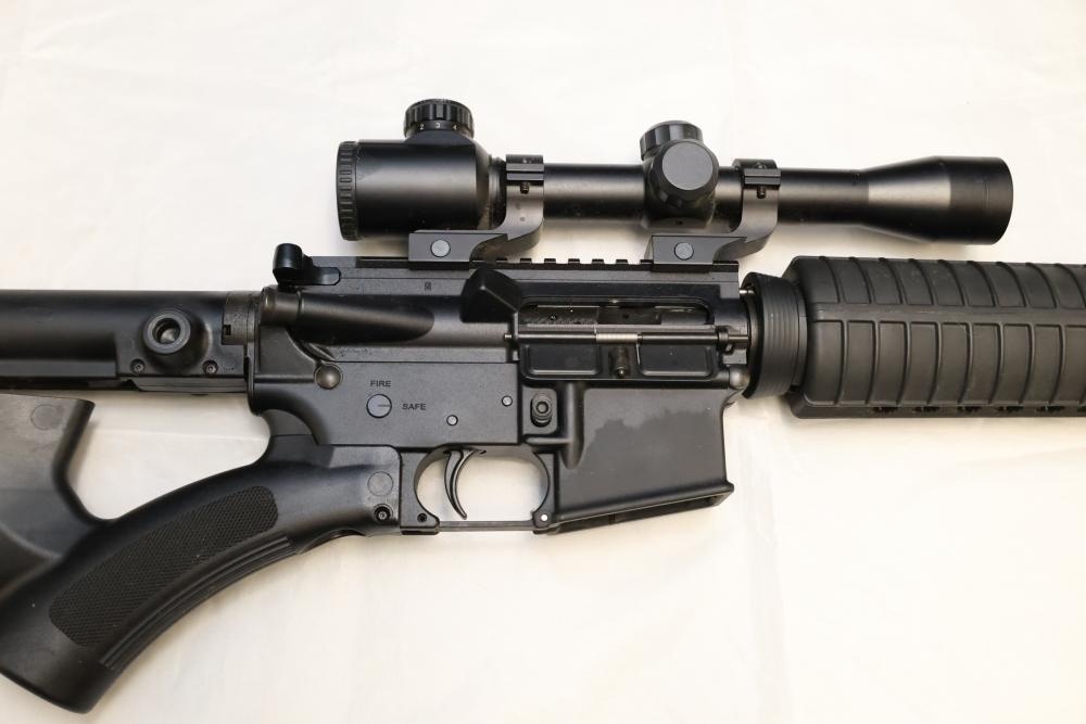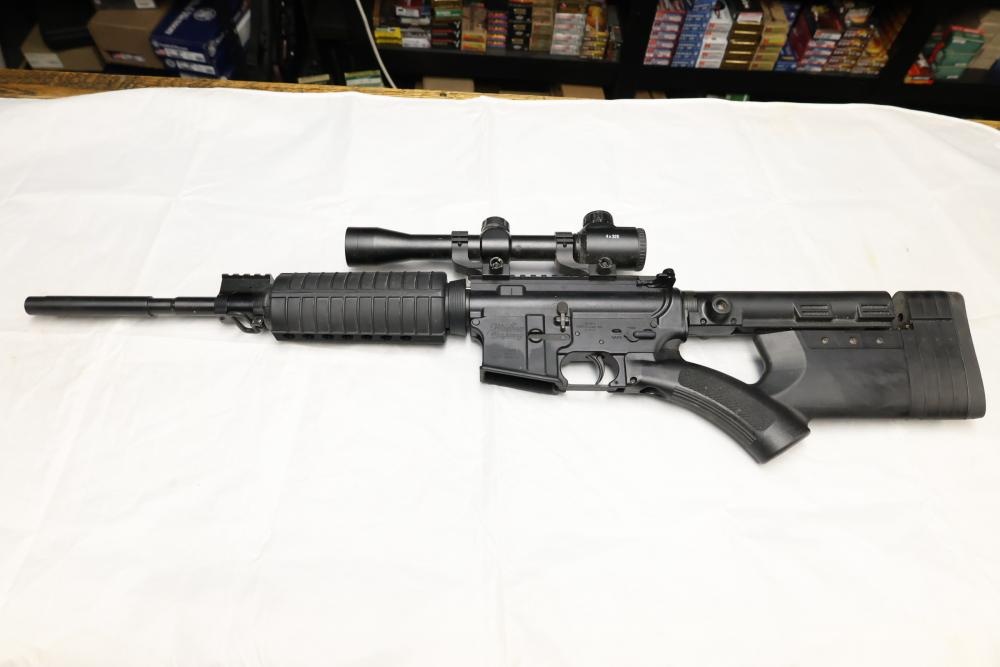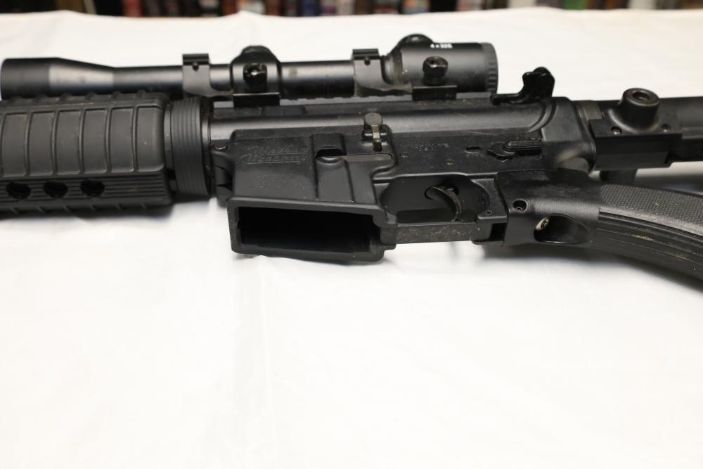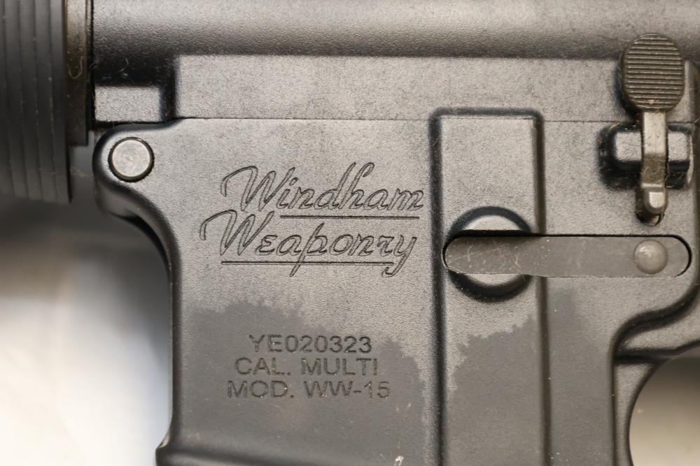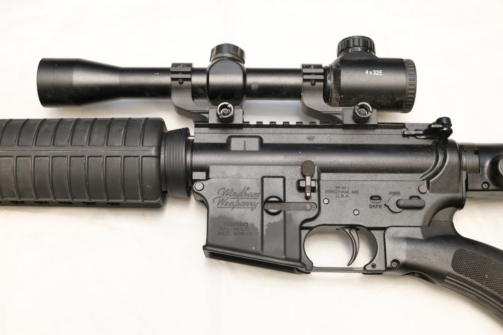 Windham Weaponry WW-15 semi-automatic rifle likely chambered in .223 Remington/5.56 NATO, with a synthetic stock, rubber butt pad, and mounted 4×32E scope. Serial Number YE020323. Not for transfer in NYS unless FFL & NYS dealer or Law Enforcement. All lots are subject to all applicable laws at the time of transfer. NOTE: Semi automatic rifles and all handguns require a license in NYS. There is a $35 transfer fee per long gun. There is a $40 transfer fee per hand gun. There is a $20 transfer fee per ammunition lot. If you fail the background check, the transfer fee still applies, and you are still required to make payment and then reconsign the lot to auction. FFL dealers are not exempt from these fees. A background check will be required for all buyers purchasing a firearm and/or ammunition. NYS charges a background check fee for all firearms and ammunition. The fee is $9 for firearms and $2.50 for ammunition. The NYS fee is per background check NOT per lot, will be collected directly by Civil Armory, and is in addition to any transfer All lots are subject to all applicable laws at the time of transfer. NOTE: Semi automatic rifles and all handguns require a license in NYS. There is a $35 transfer fee per long gun. There is a $40 transfer fee per hand gun. There is a $20 transfer fee per ammunition lot. If you fail the background check, the transfer fee still applies, and you are still required to make payment and then reconsign the lot to auction. FFL dealers are not exempt from these fees. A background check will be required for all buyers purchasing a firearm and/or ammunition. NYS charges a background check fee for all firearms and ammunition. The fee is $9 for firearms and $2.50 for ammunition. The NYS fee is per background check NOT per lot, will be collected directly by Civil Armory, and is in addition to any transfer